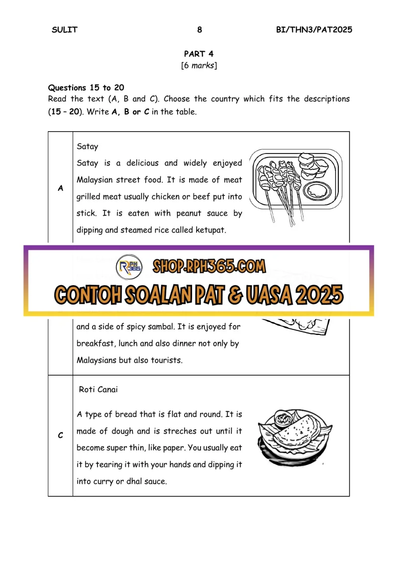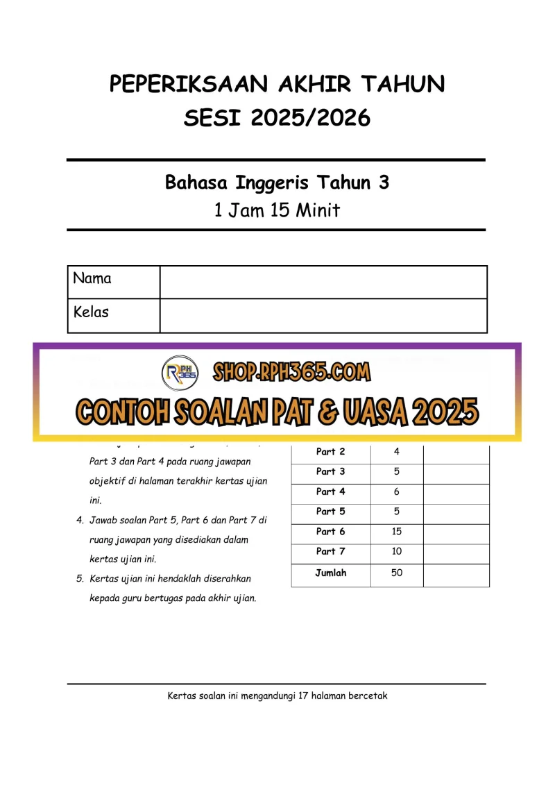 PAT 2025 Bahasa Inggeris Tahun 3 SK by Teacher Sandra