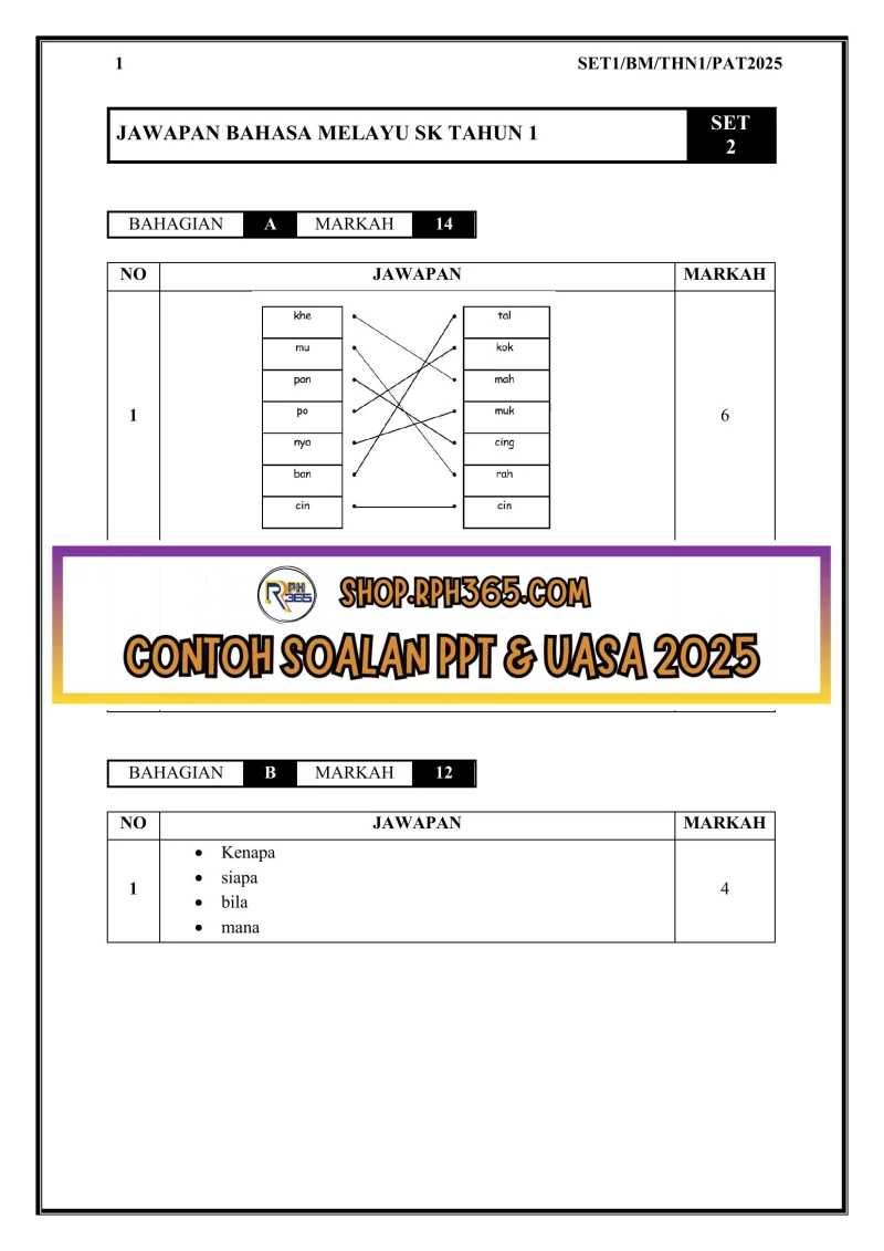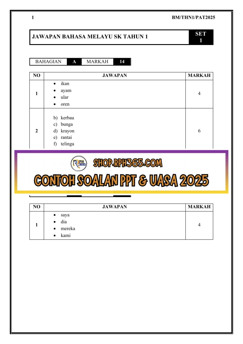 PAT 2025 Bahasa Melayu SK Tahun 1 by Cikgu Az