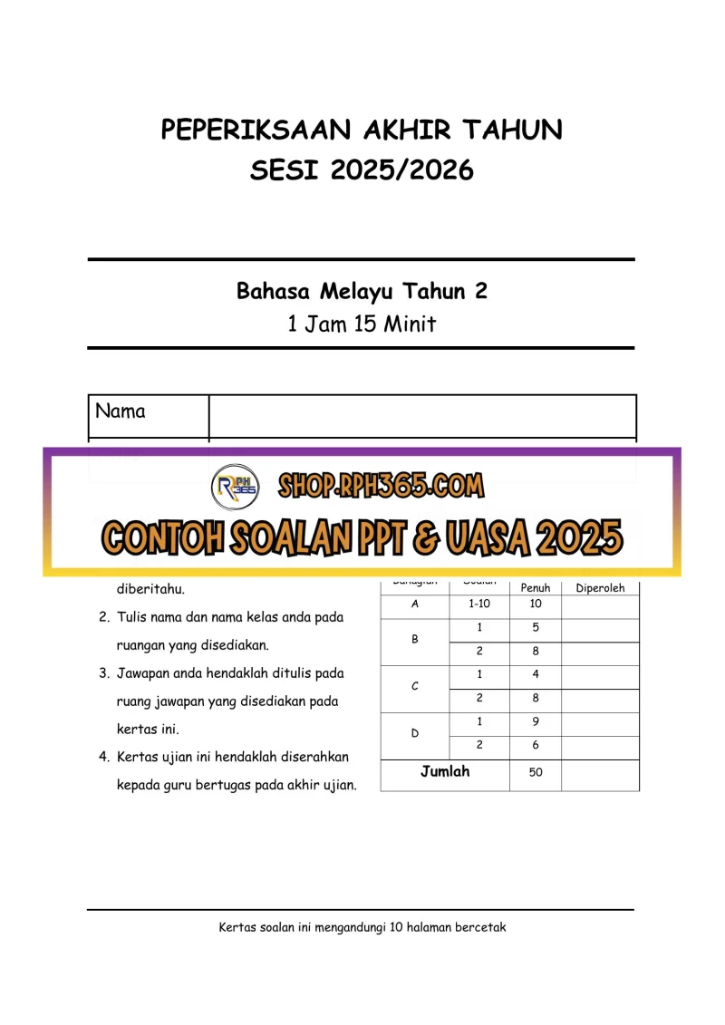 PAT 2025 Bahasa Melayu SK Tahun 2 by Cikgu Az