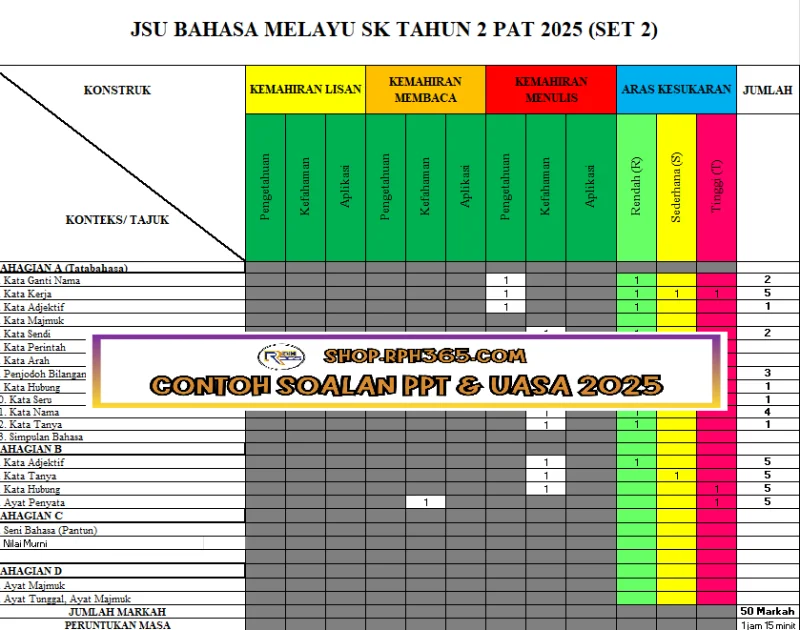Jumlah Soalan: 2 Set Penulis: cikguwaniy Pakej: Soalan + Jawapan + JSU Format fail: Words/PDF/Excel