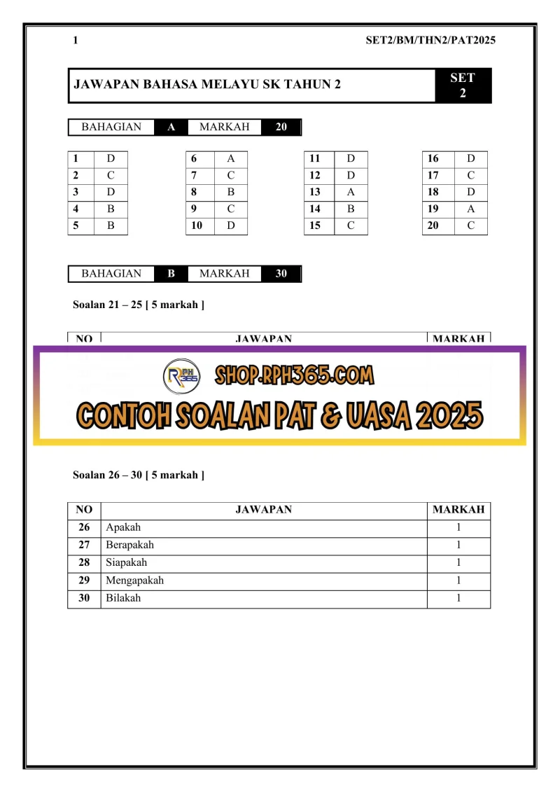 PAT 2025 Bahasa Melayu SK Tahun 2 by cikguwaniy