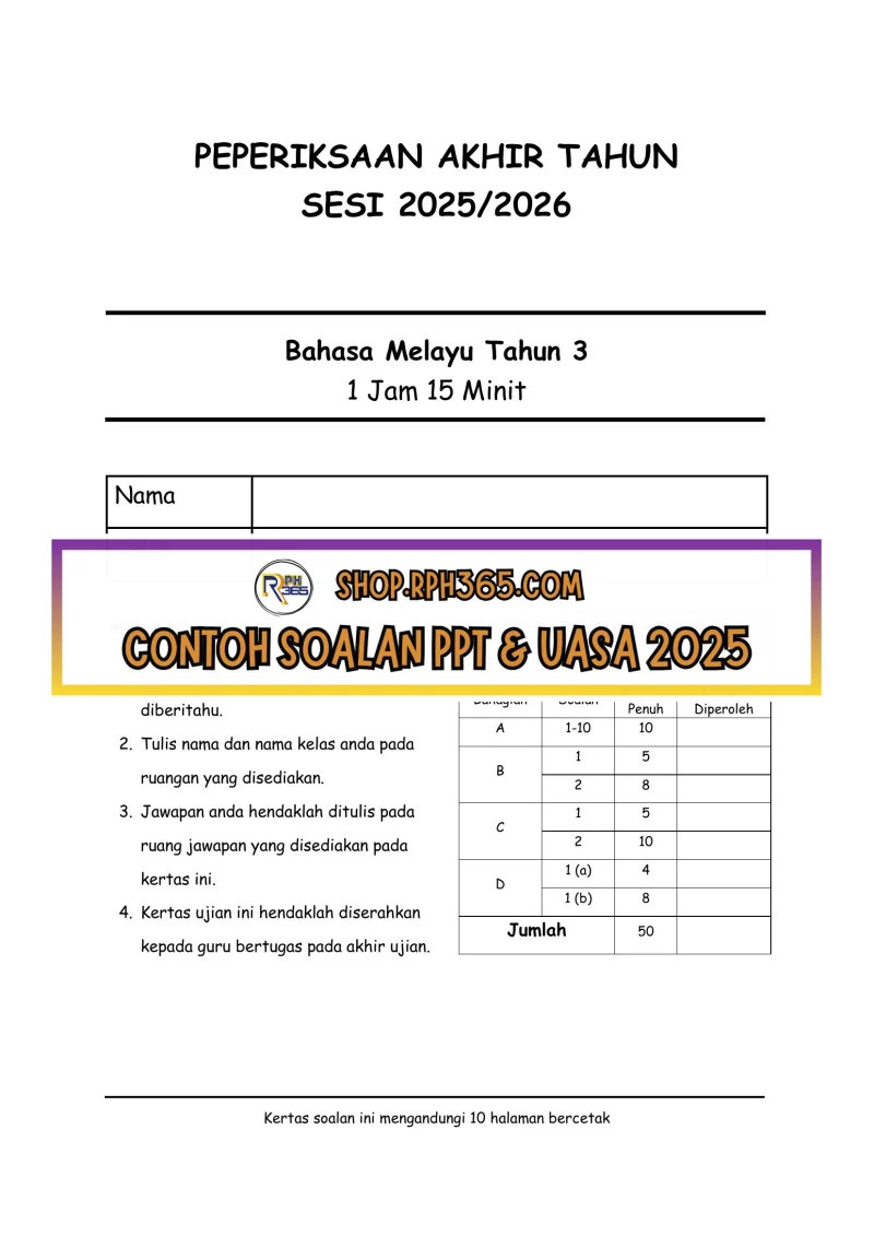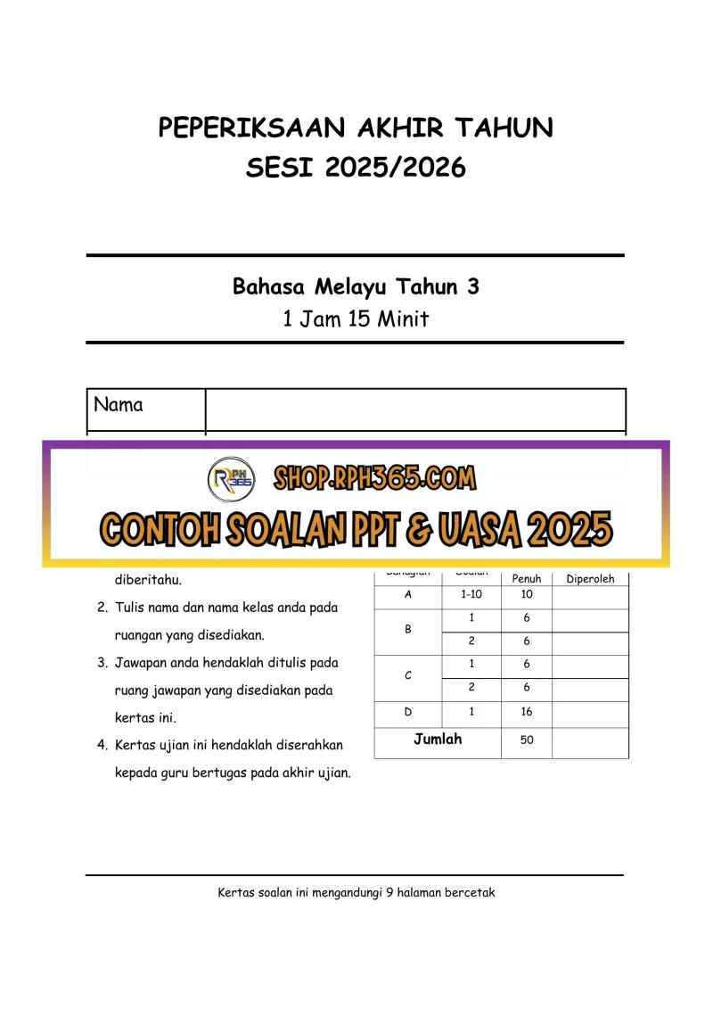 PAT 2025 Bahasa Melayu SK Tahun 3 by Cikgu Az