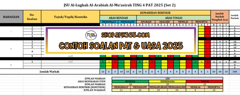 Jumlah Soalan: 2 Set Penulis: Farah Naimah Pakej: Soalan + Jawapan + JSU Format fail: Words/PDF/Excel