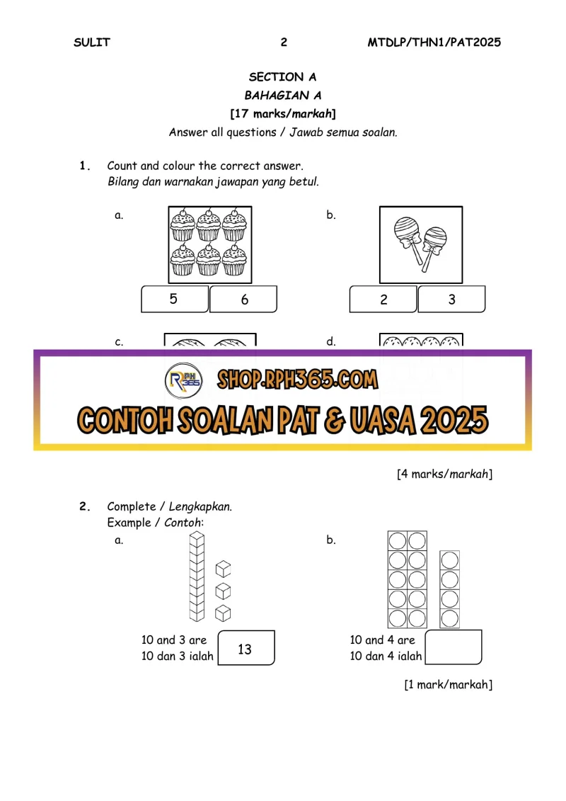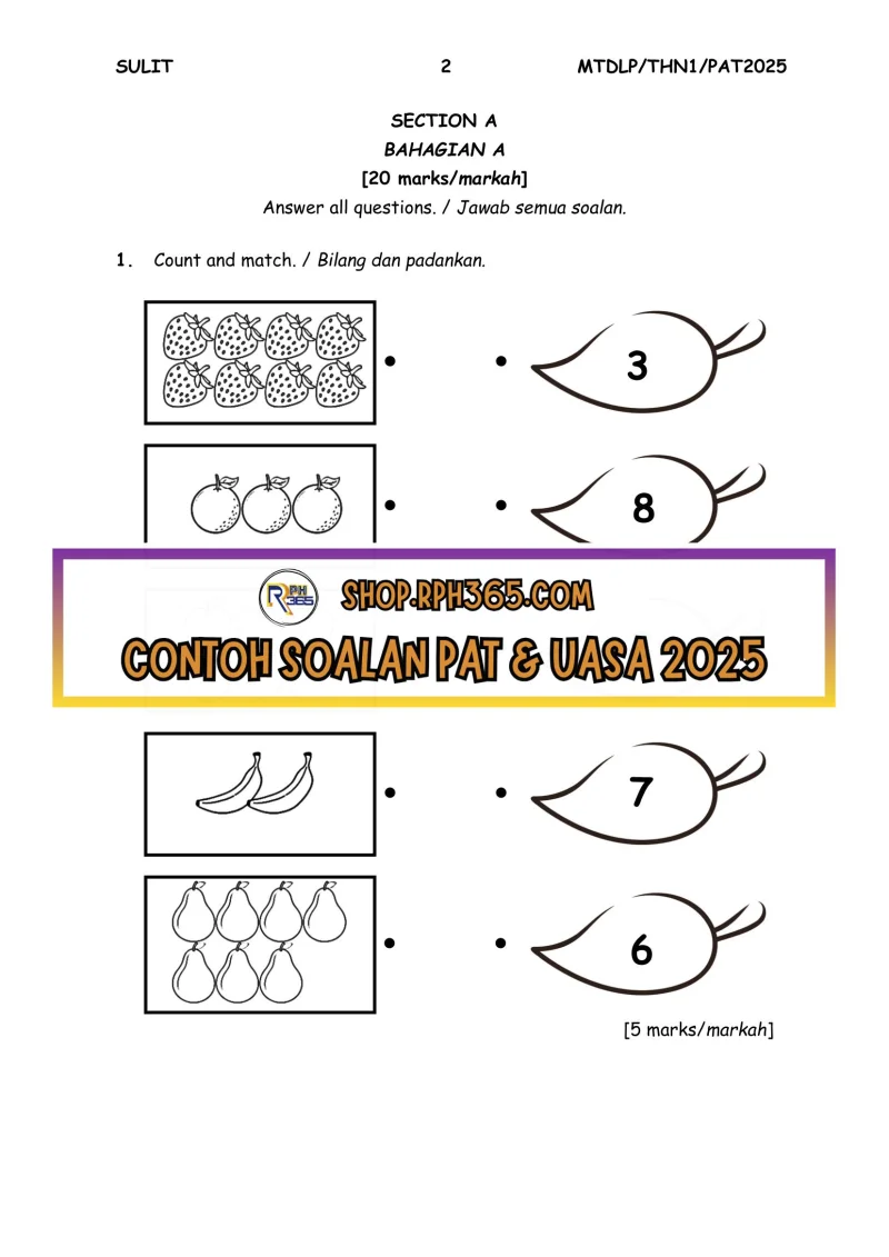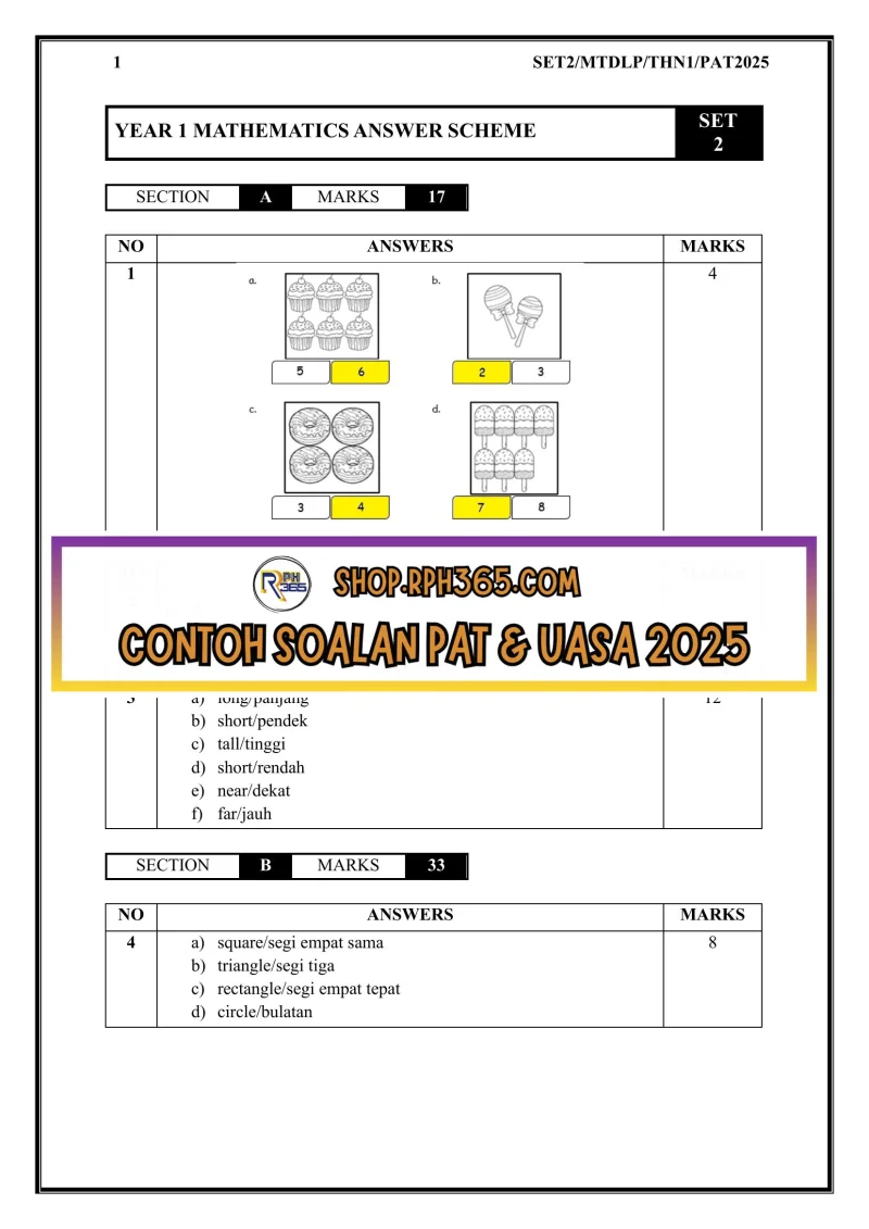 Jumlah Soalan: 2 Set Penulis: Cikgu Fatimah Pakej: Soalan + Jawapan + JSU Format fail: Words/PDF/Excel Bahasa: English/Bahasa Melayu
