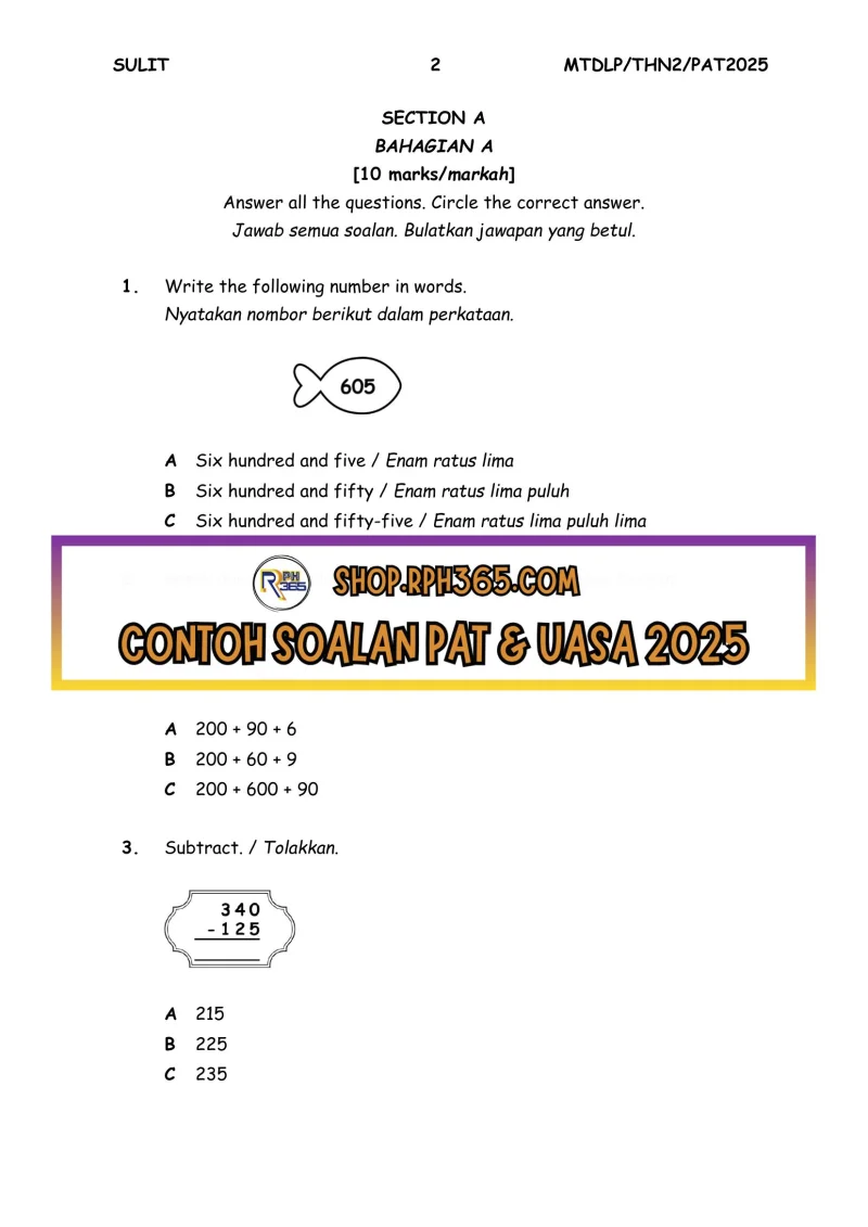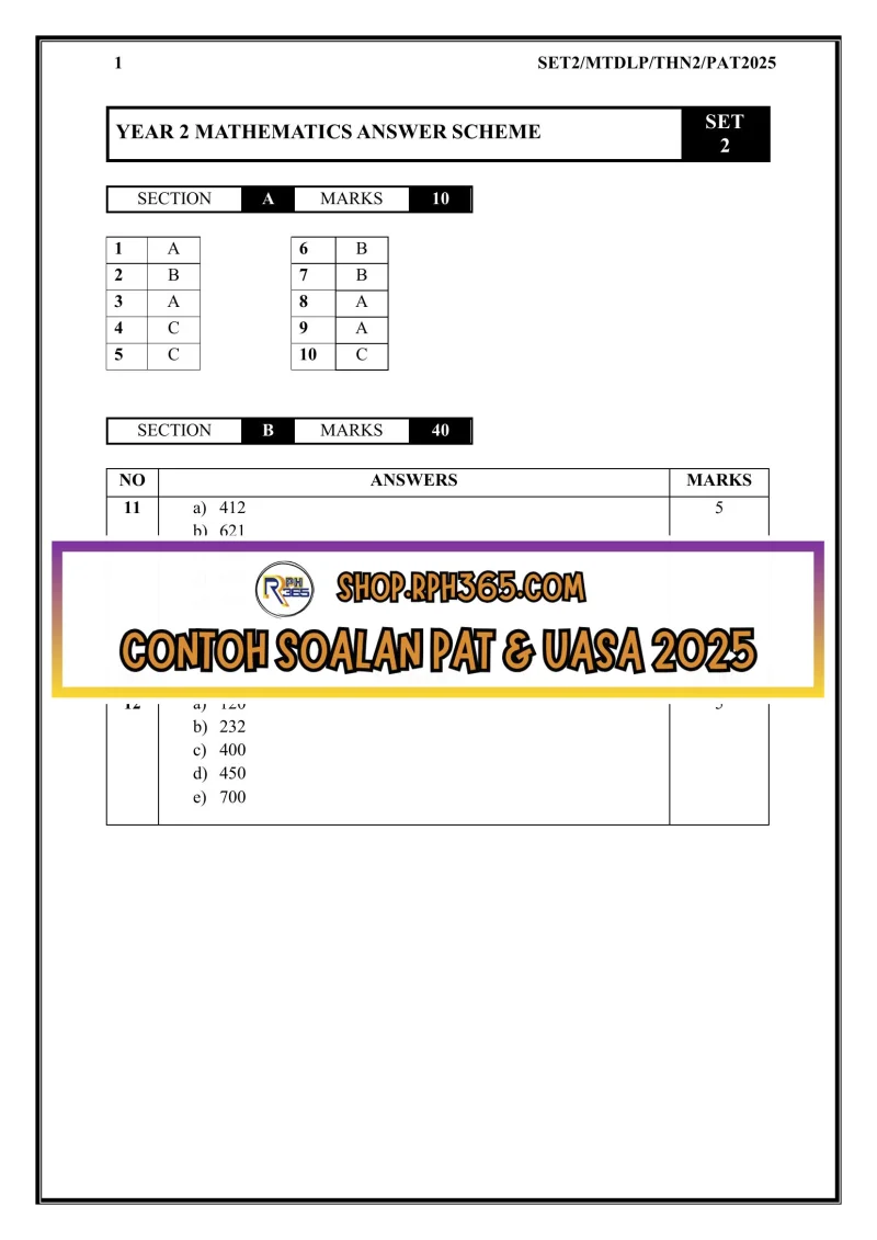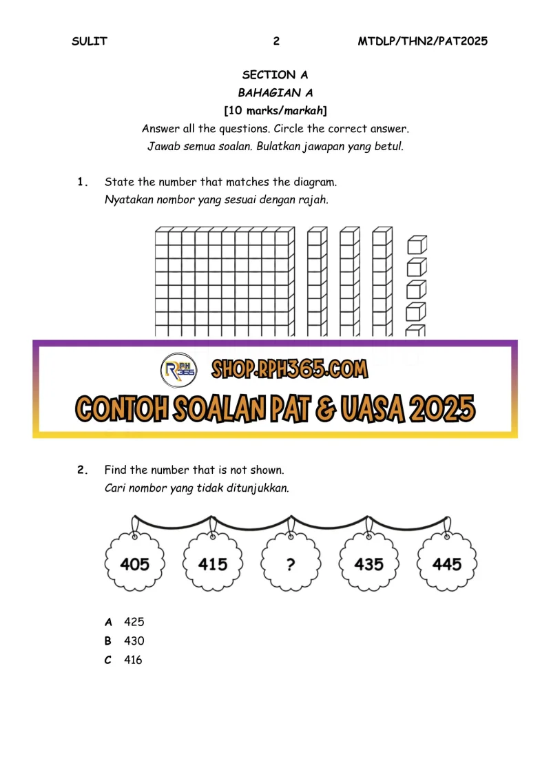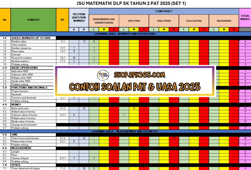 PAT 2025 Matematik DLP SK Tahun 2 by Cikgu Fatimah