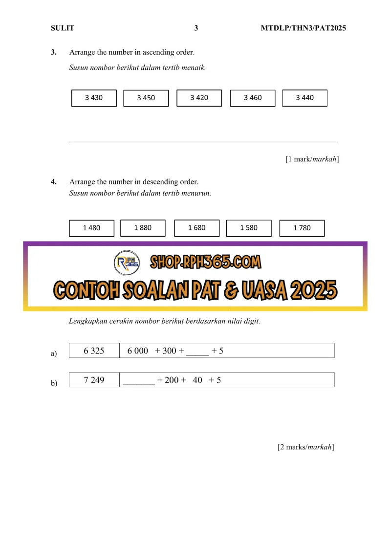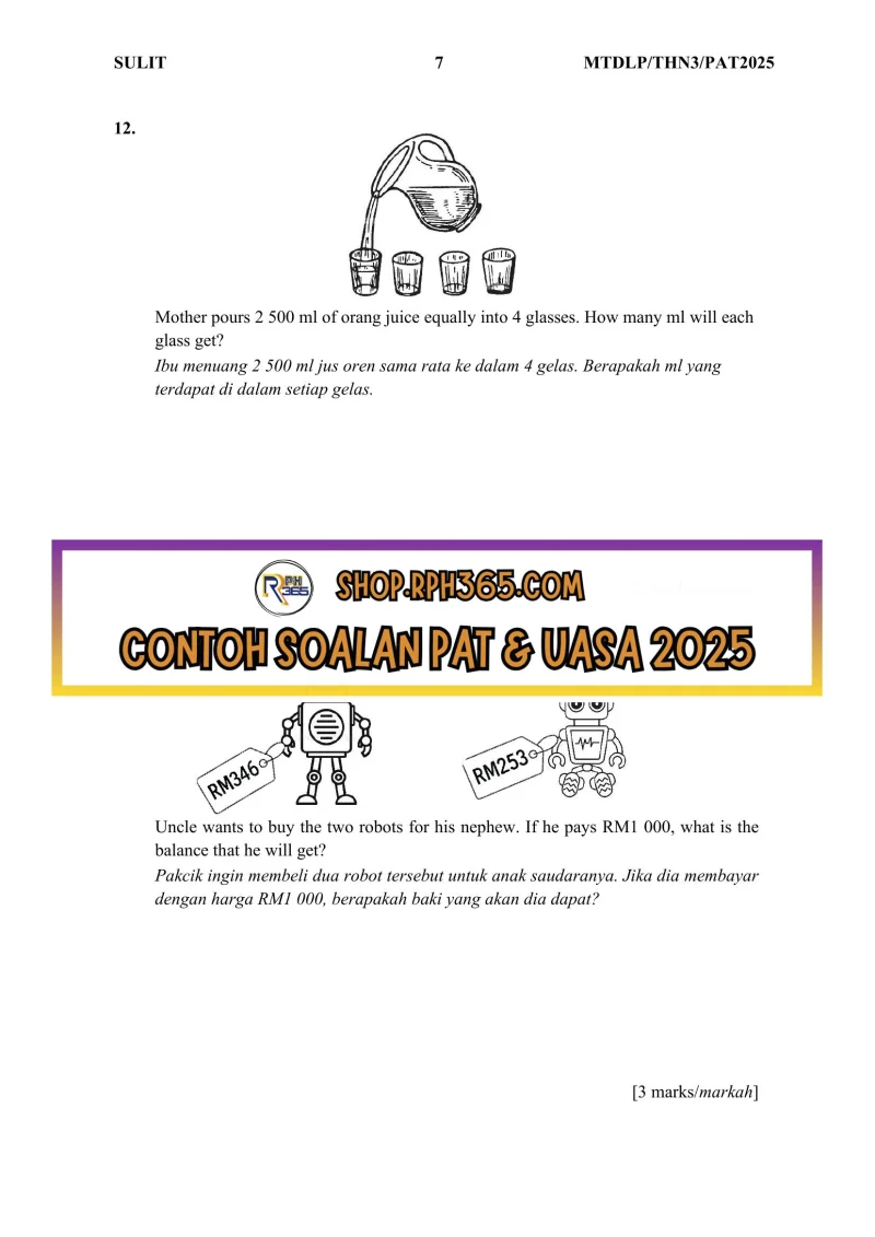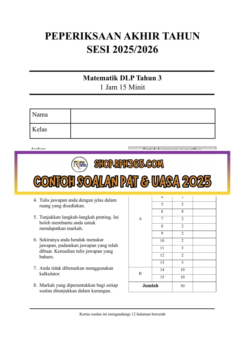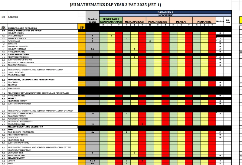 PAT 2025 Matematik DLP SK Tahun 3 by Cikgu Hanna