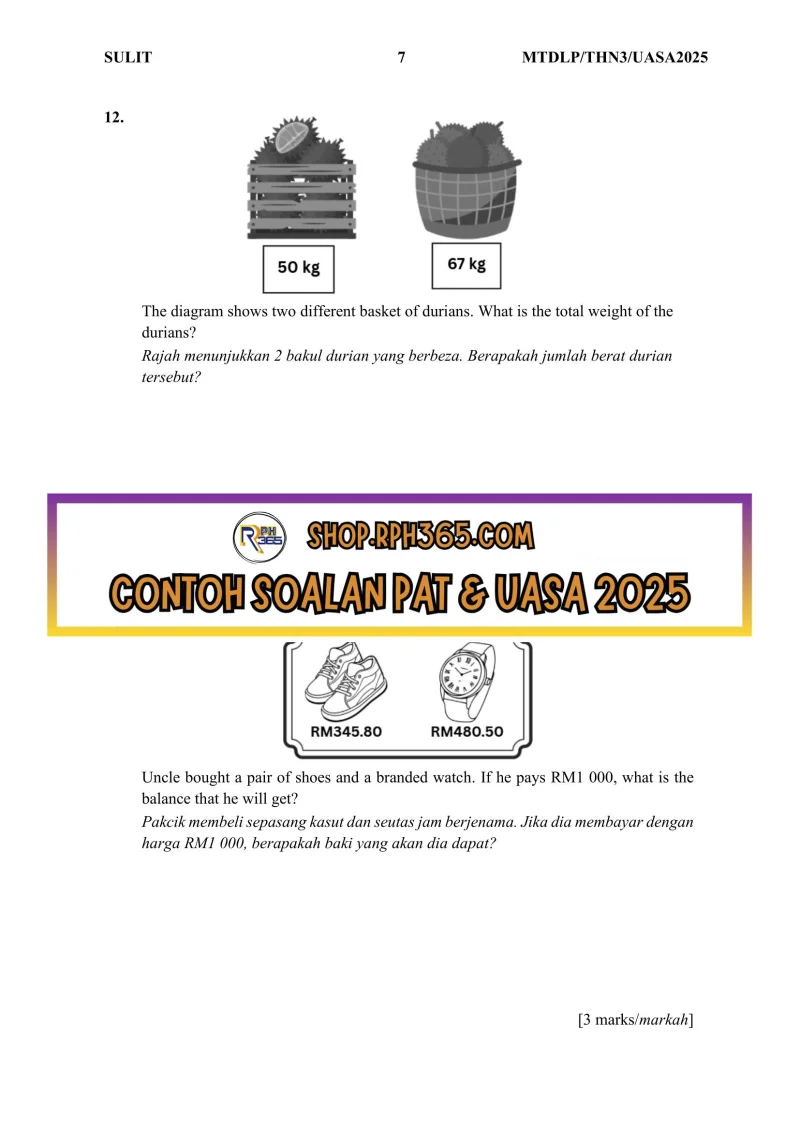 Jumlah Soalan: 2 Set Penulis: Cikgu Hanna Pakej: Soalan + Jawapan + JSU Format fail: Words/PDF/Excel Bahasa: English/Bahasa Melayu