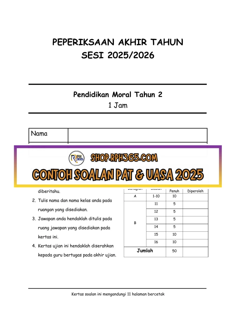 PAT 2025 Pend Moral SK Tahun 2 by Cikgu Fatimah
