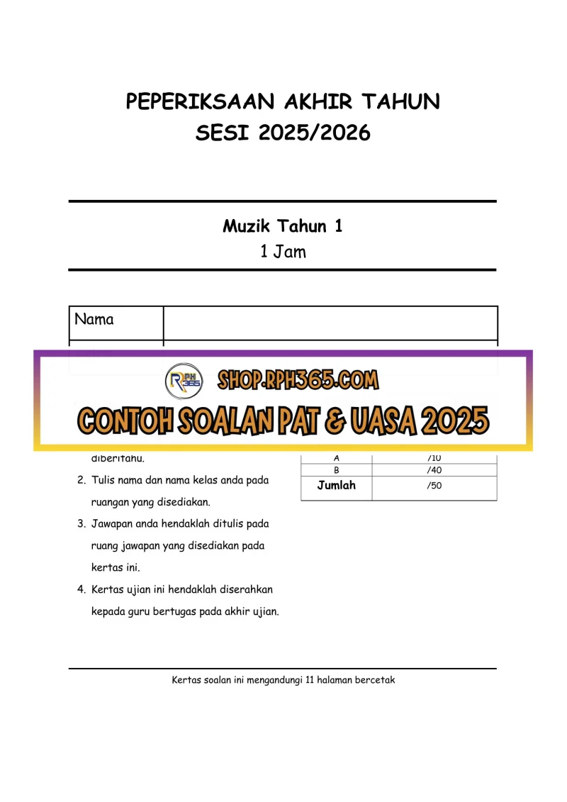 PAT 2025 Pend Muzik Tahun 1 by Cikgu Vie