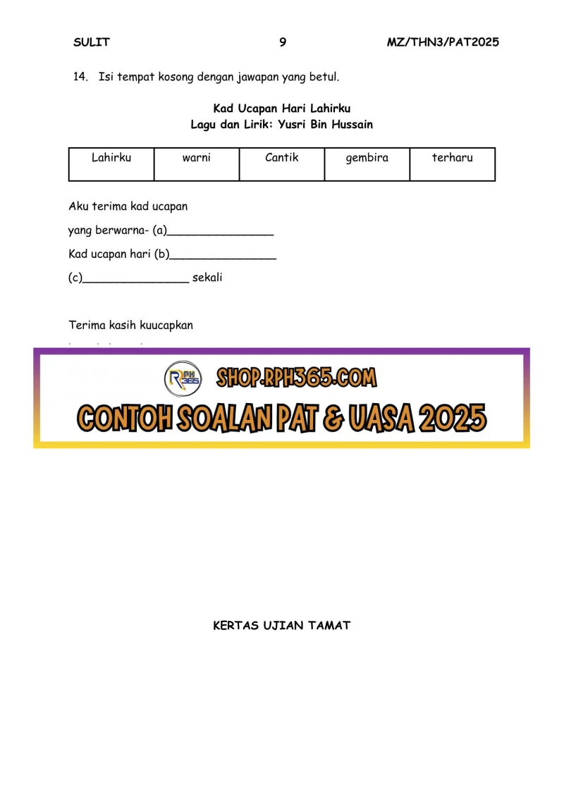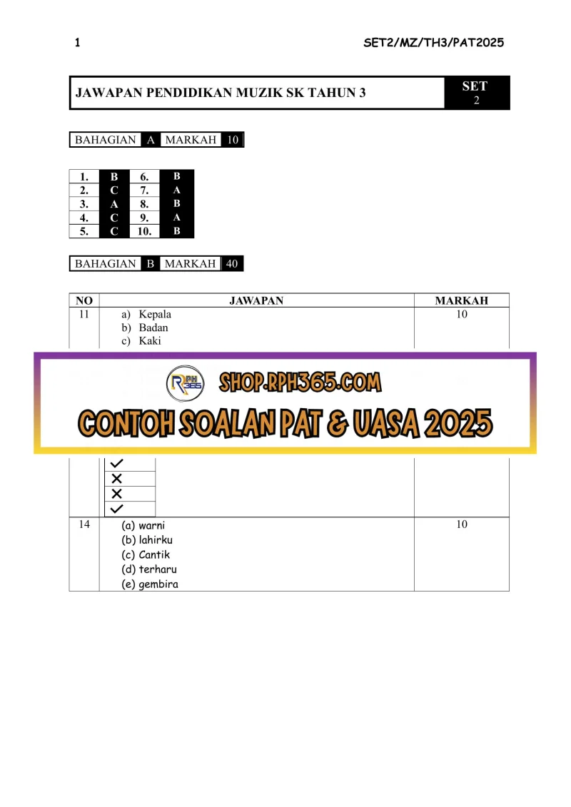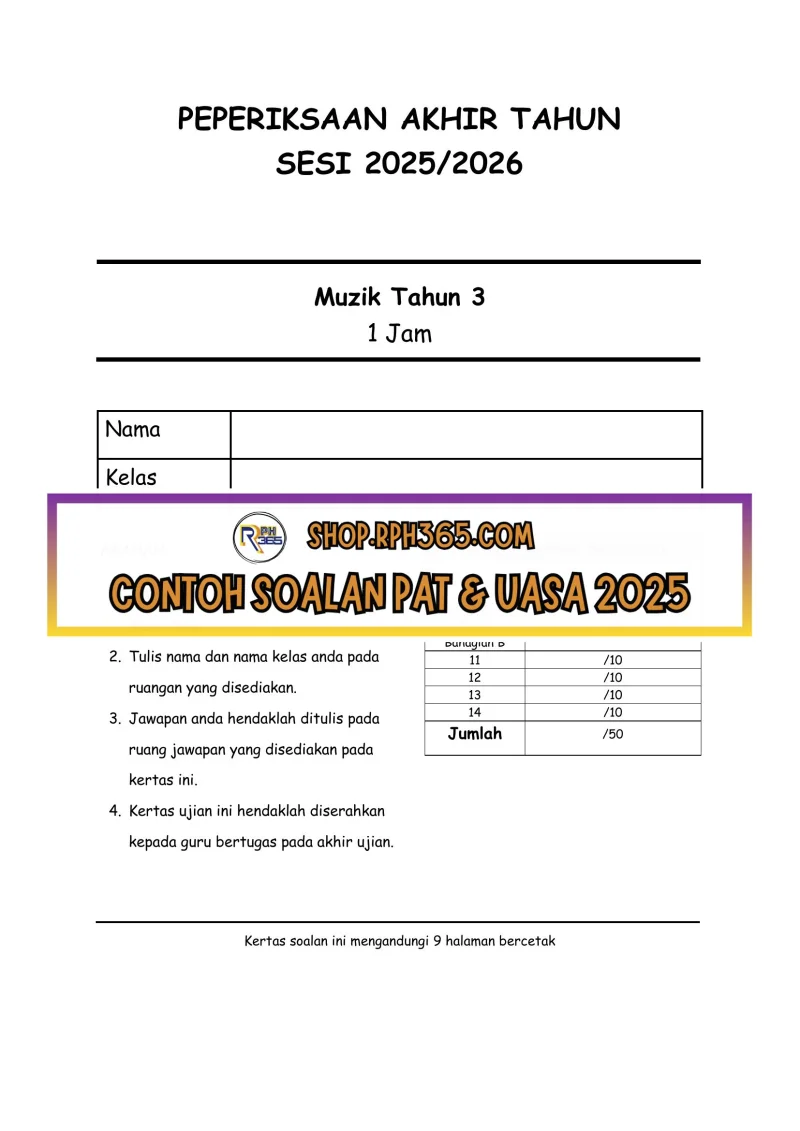 PAT 2025 Pend Muzik Tahun 3 by Cikgu Vie