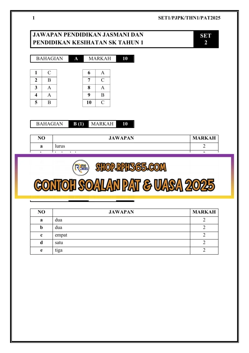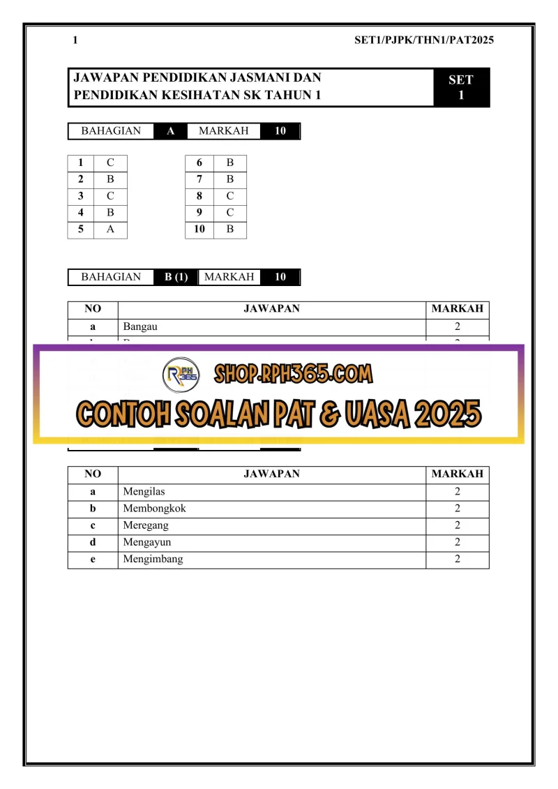 PAT 2025 PJPK SK Tahun 1 by Cikgu Ayu