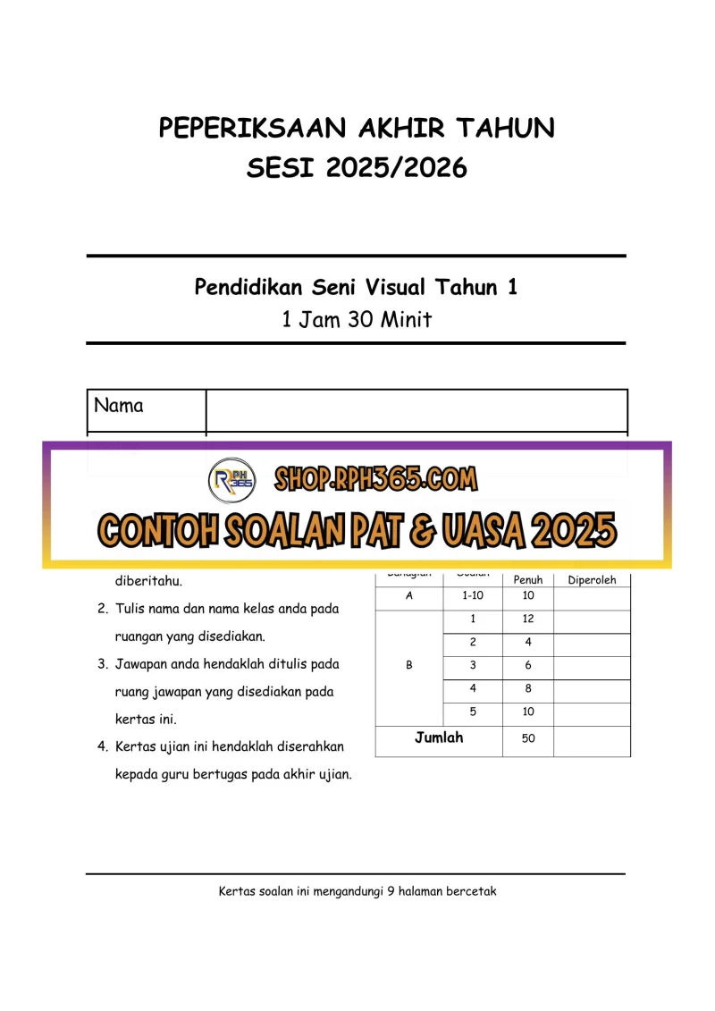 PAT 2025 PSV SK Tahun 1 by Cikgu Rai