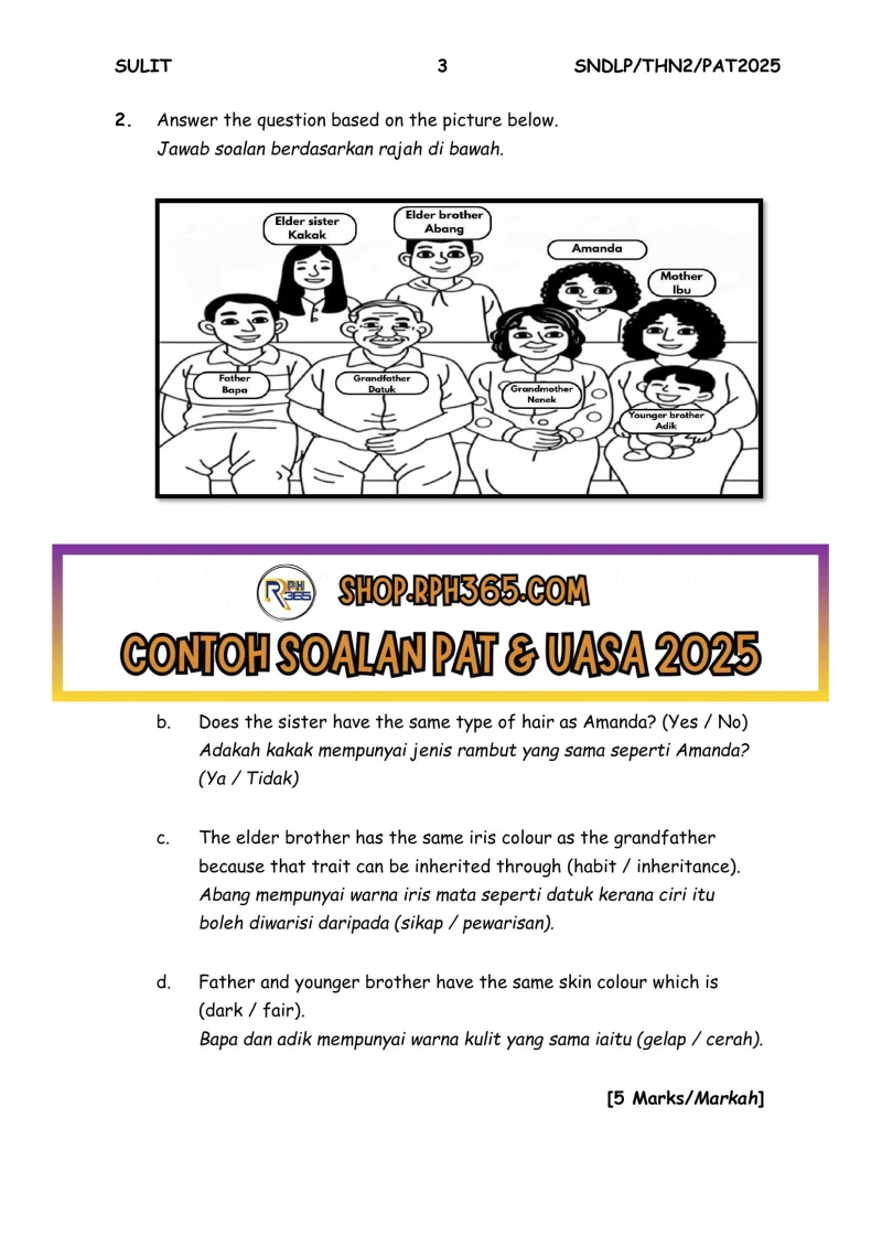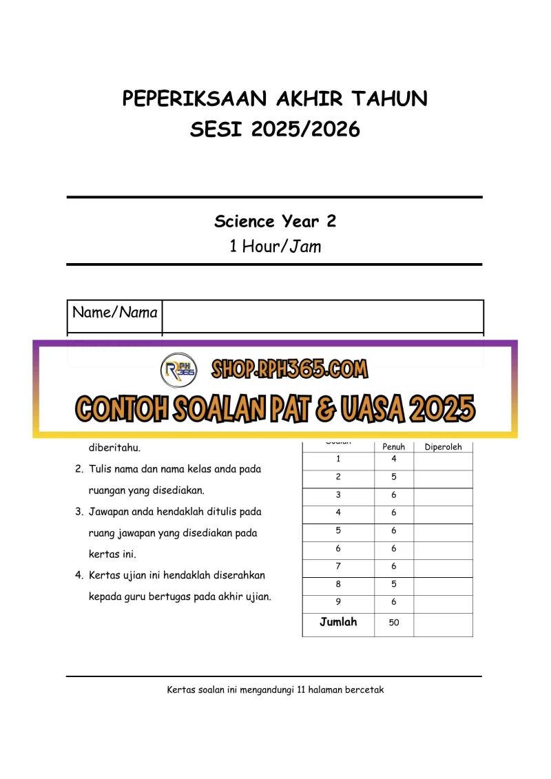PAT 2025 Sains DLP SK Tahun 2 by Ms Lilybee