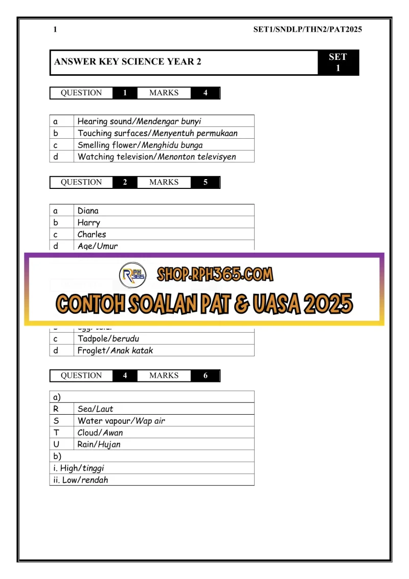 Jumlah Soalan: 2 Set Penulis: Ms Lilybee Pakej: Soalan + Jawapan + JSU Format fail: Words/PDF/Excel Bahasa: English/Bahasa Melayu