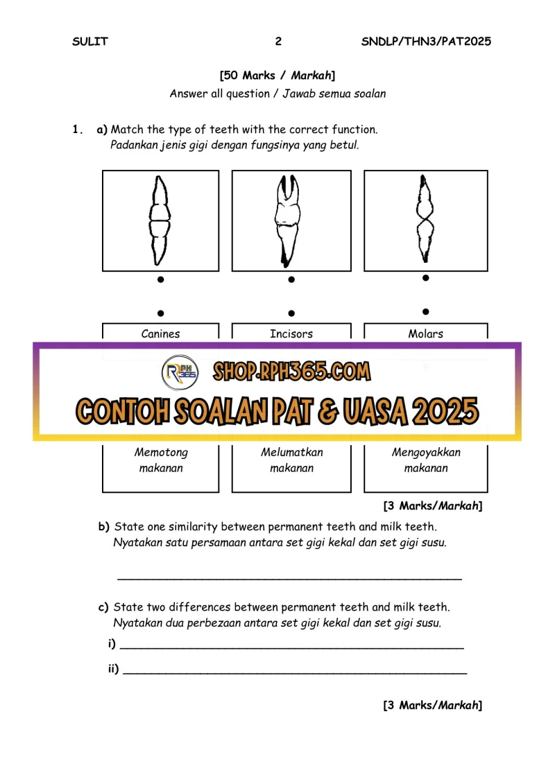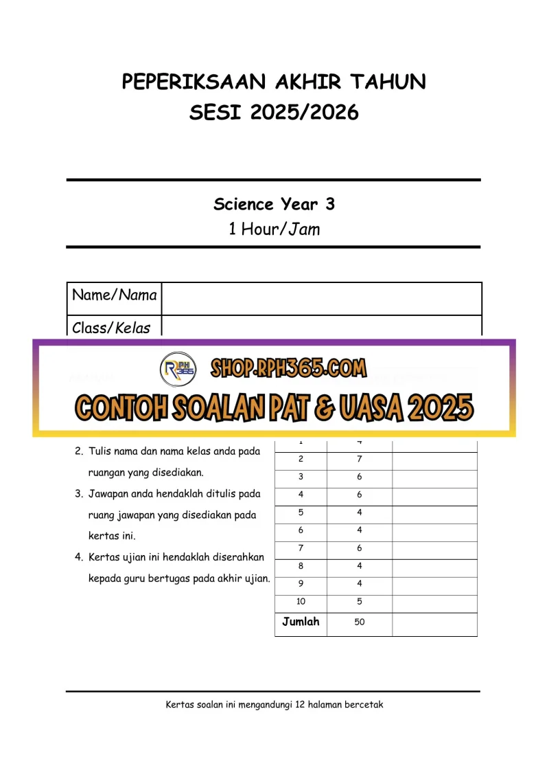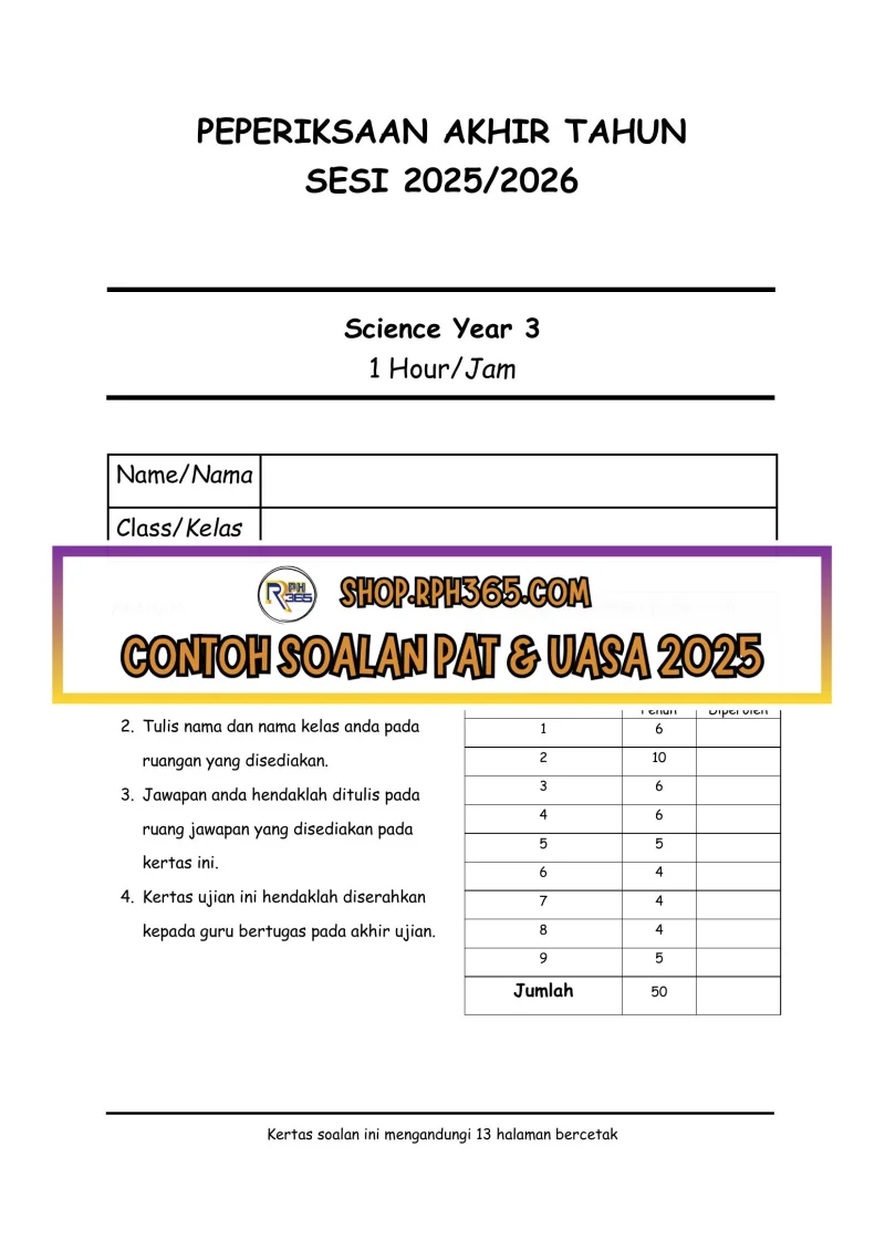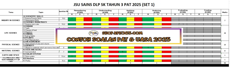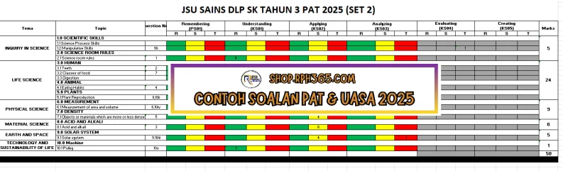 PAT 2025 Sains DLP SK Tahun 3 by Ms Lilybee