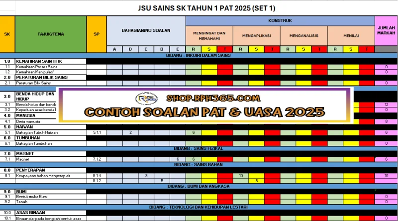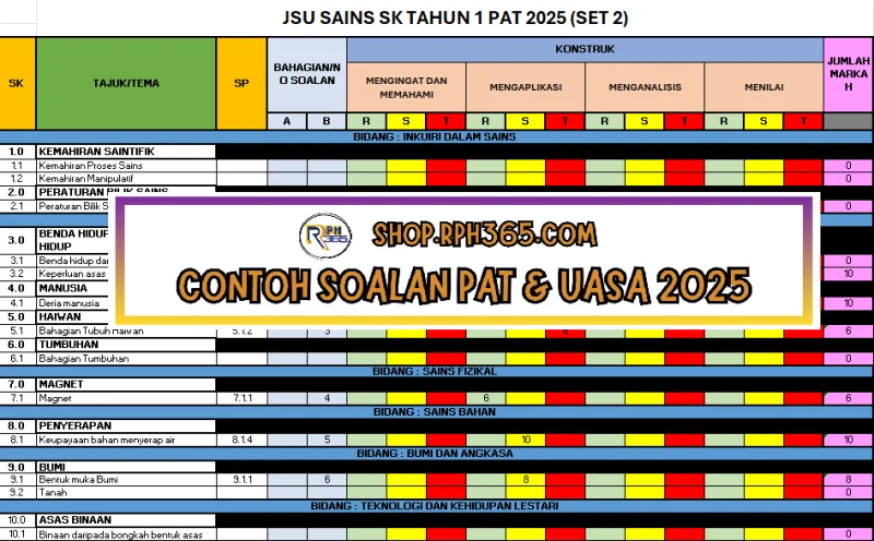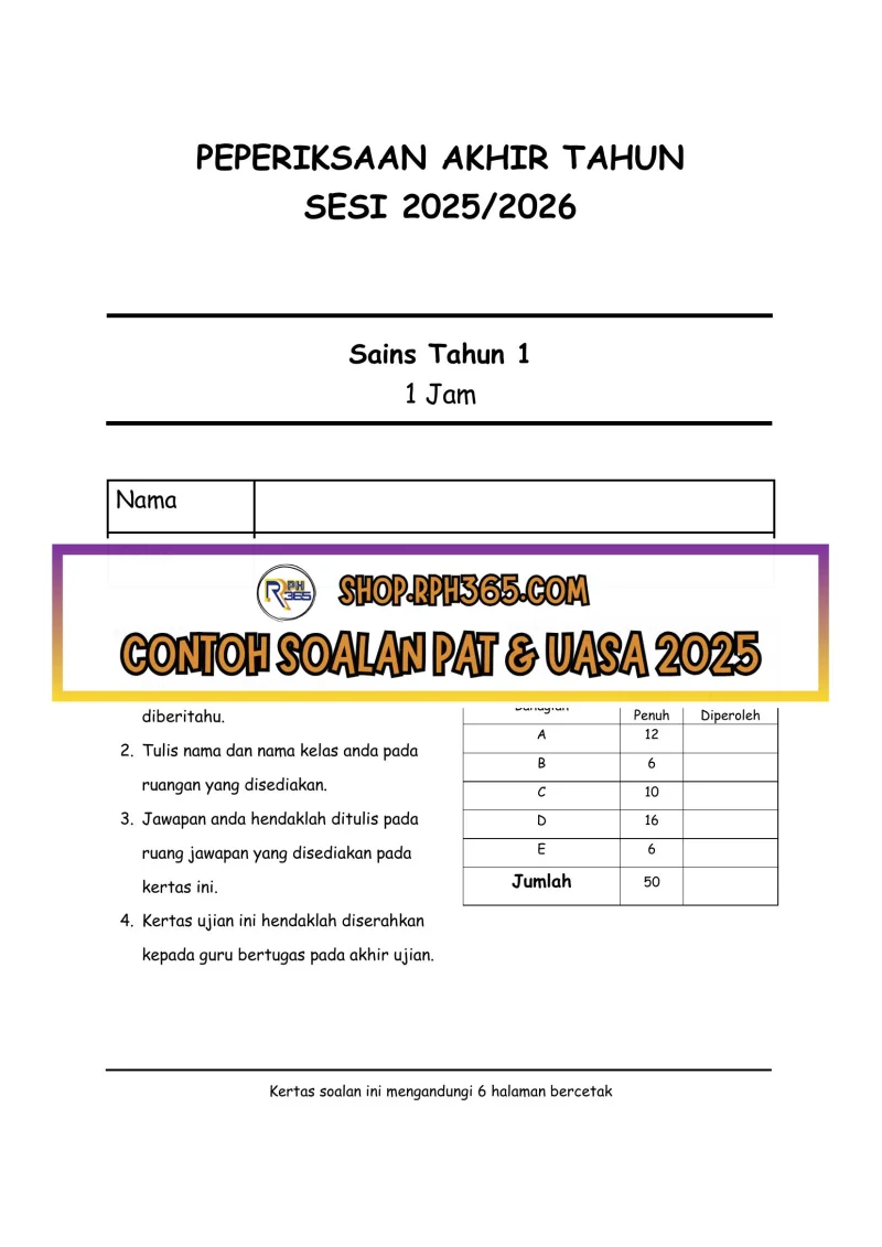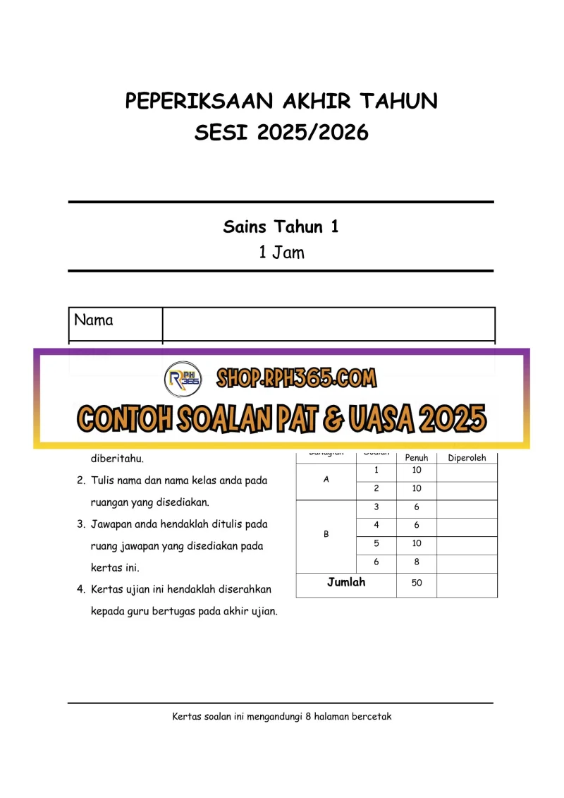 PAT 2025 Sains SK Tahun 1 by Cikgu Fatimah