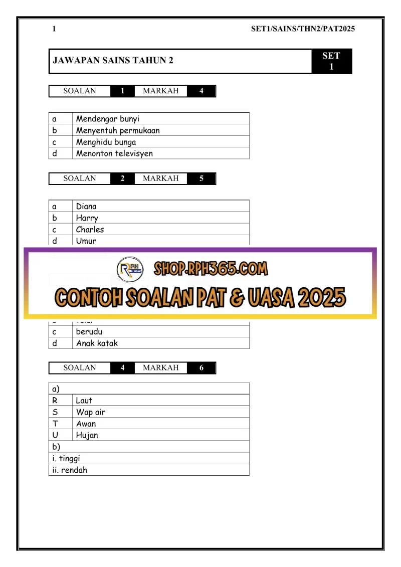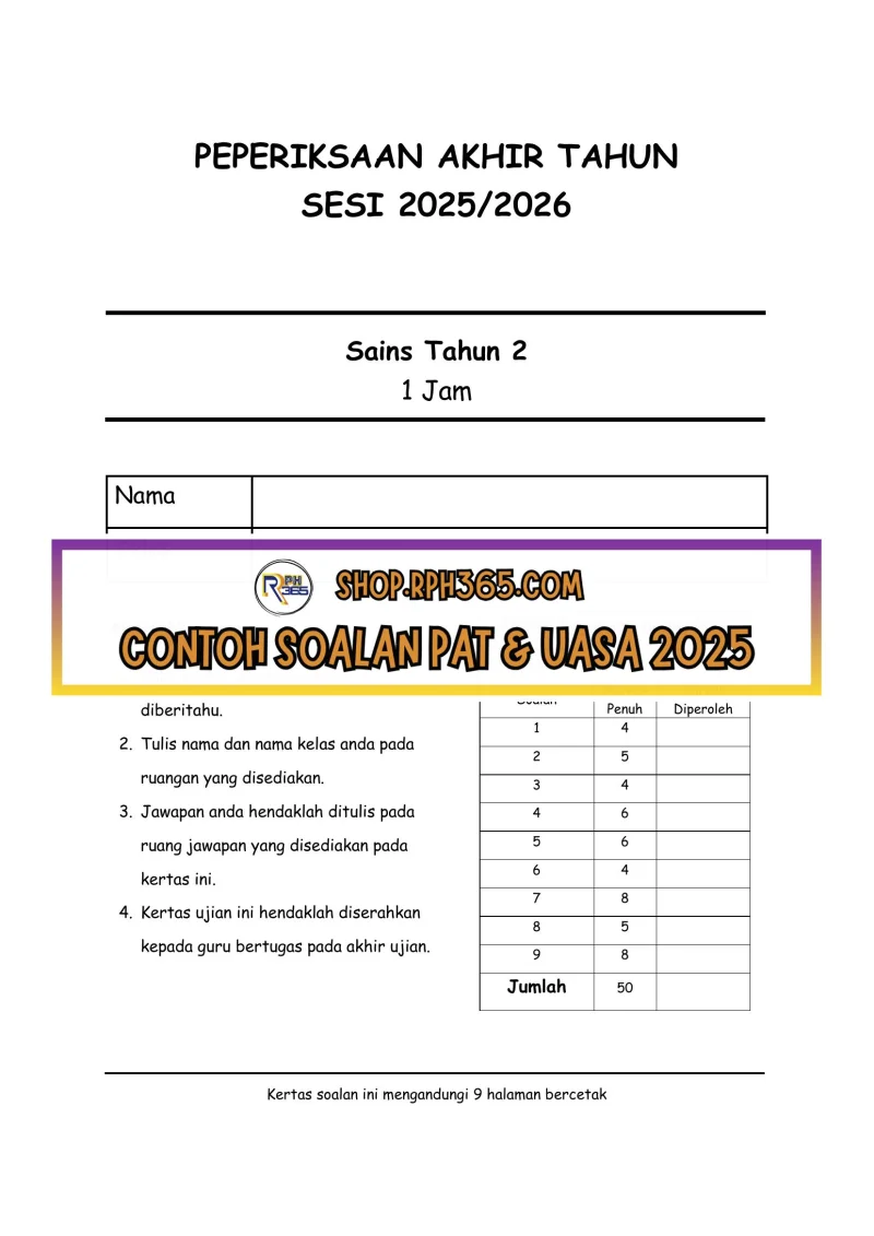PAT 2025 Sains SK Tahun 2 by Ms Lilybee