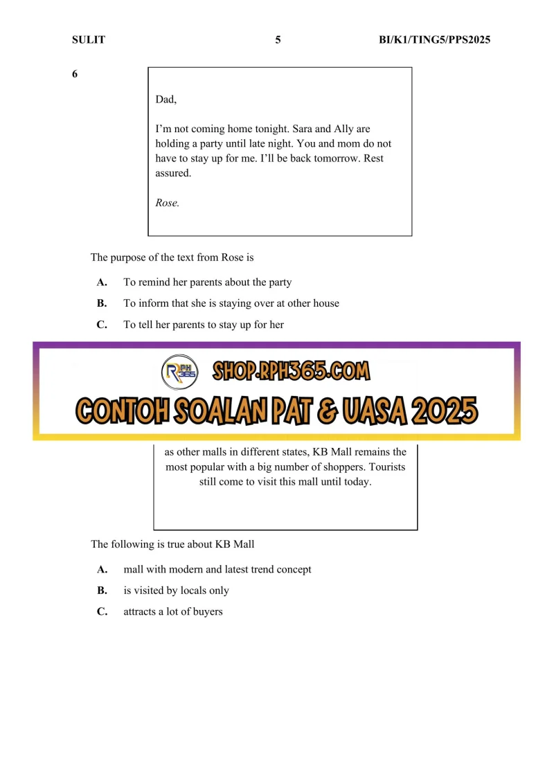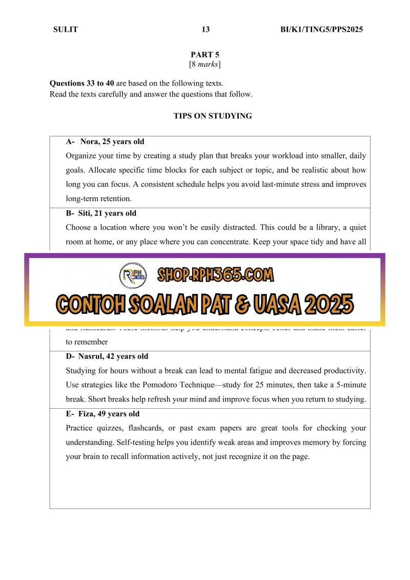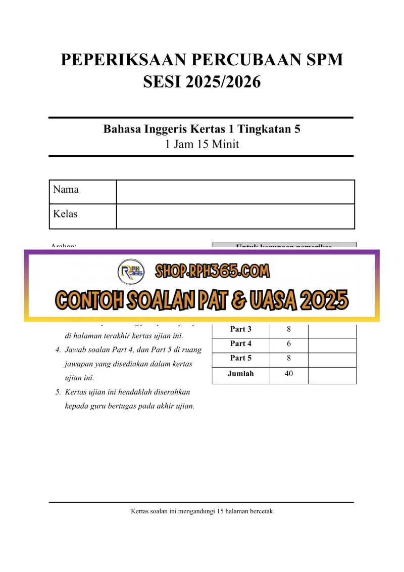 PPS 2025 Bahasa Inggeris SMK Ting 5 by Teacher Tania