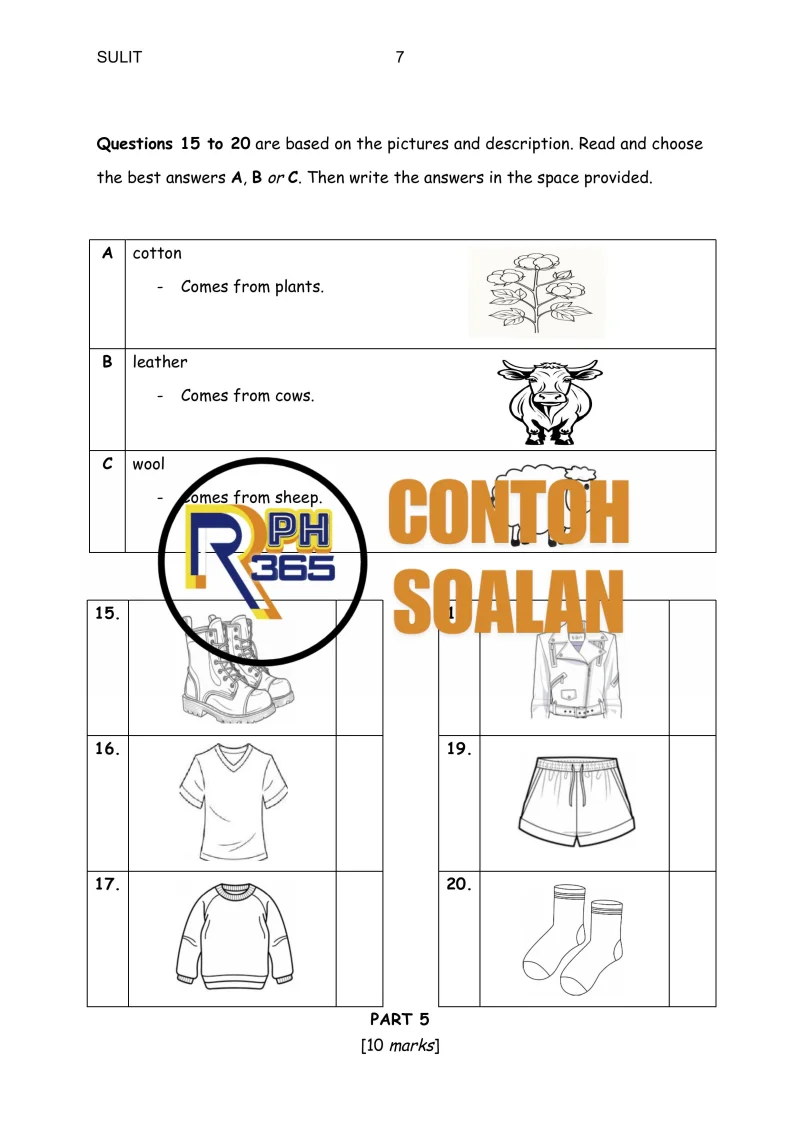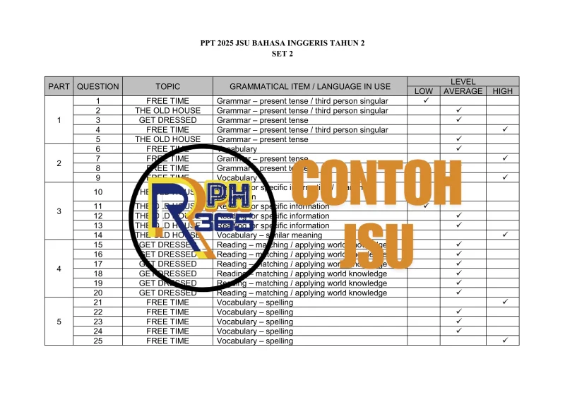 Jumlah soalan: 2 Set Edisi: Guru Tajuk terakhir: Penulis: Mdm Wee Format fail dalam Word dan PDF. JSU disediakan.