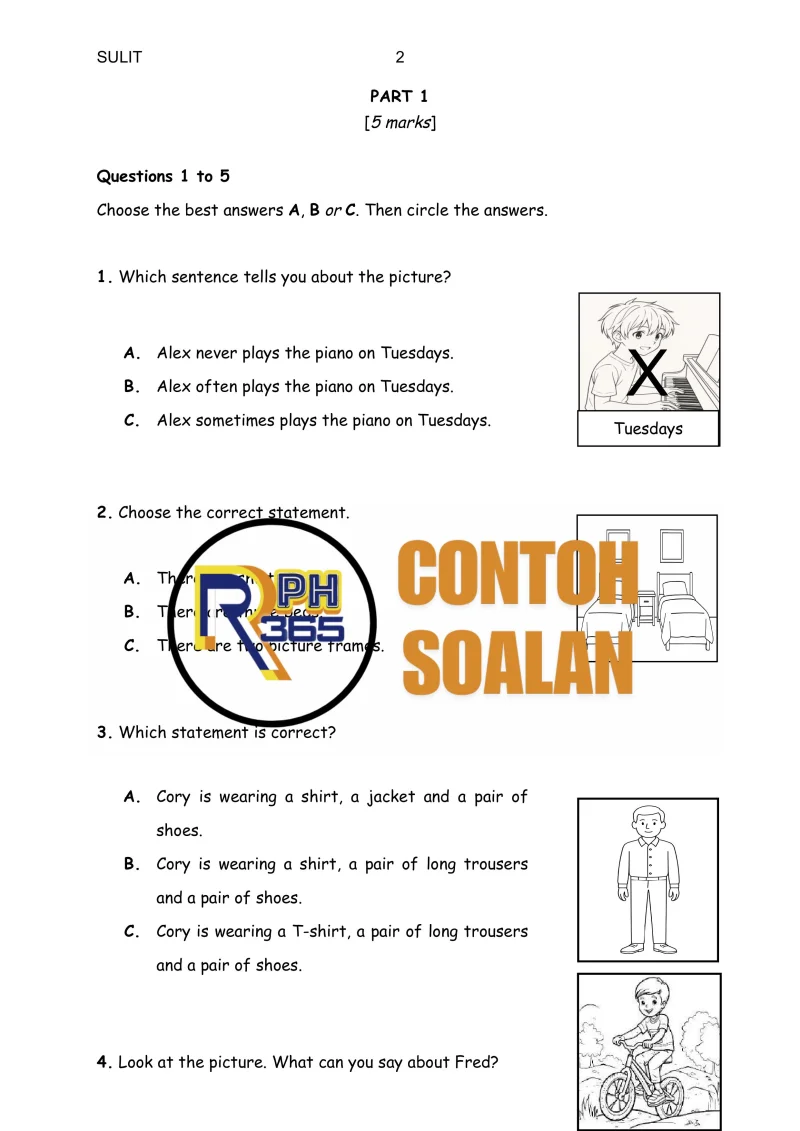 Jumlah soalan: 2 Set Edisi: Murid Tajuk terakhir: Penulis: Mdm Wee Format fail dalam PDF.