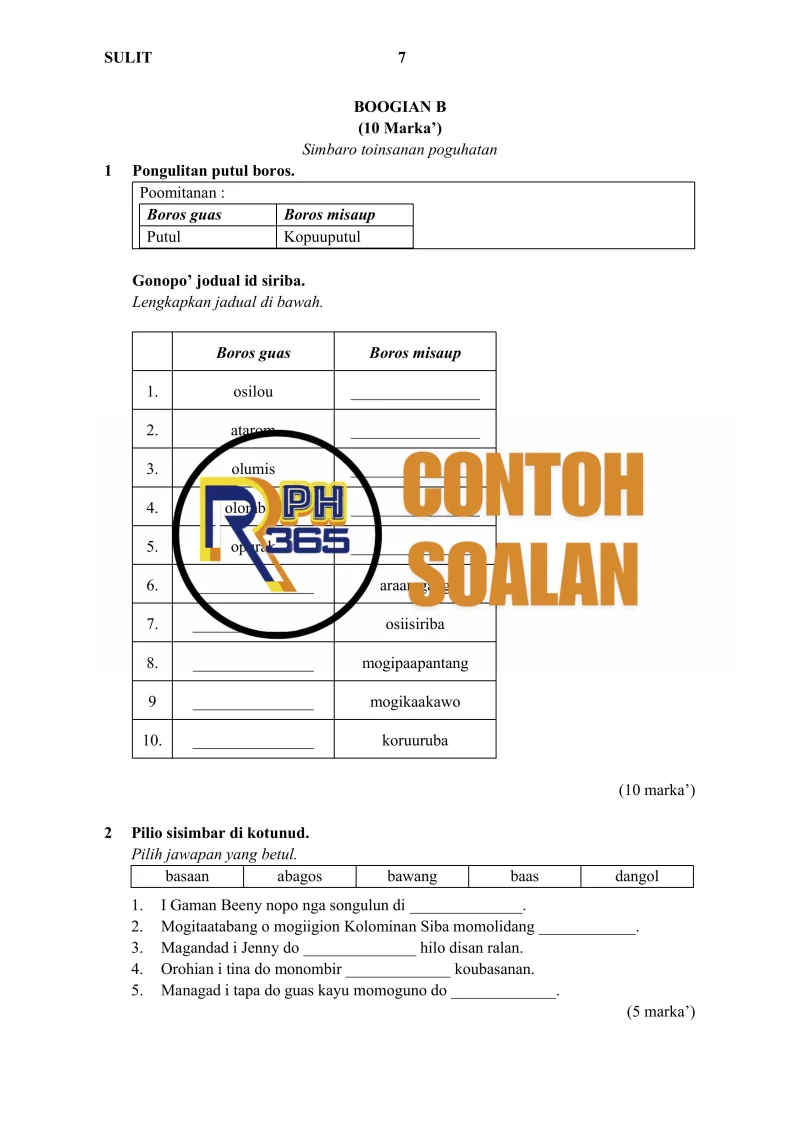 Jumlah soalan: 2 Set Edisi: Guru Tajuk terakhir: Penulis: mongingia’ Tati