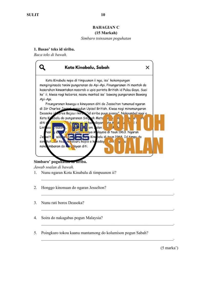 Jumlah soalan: 1 Set Edisi: Murid Tajuk terakhir: Penulis: mongingia’ Tati