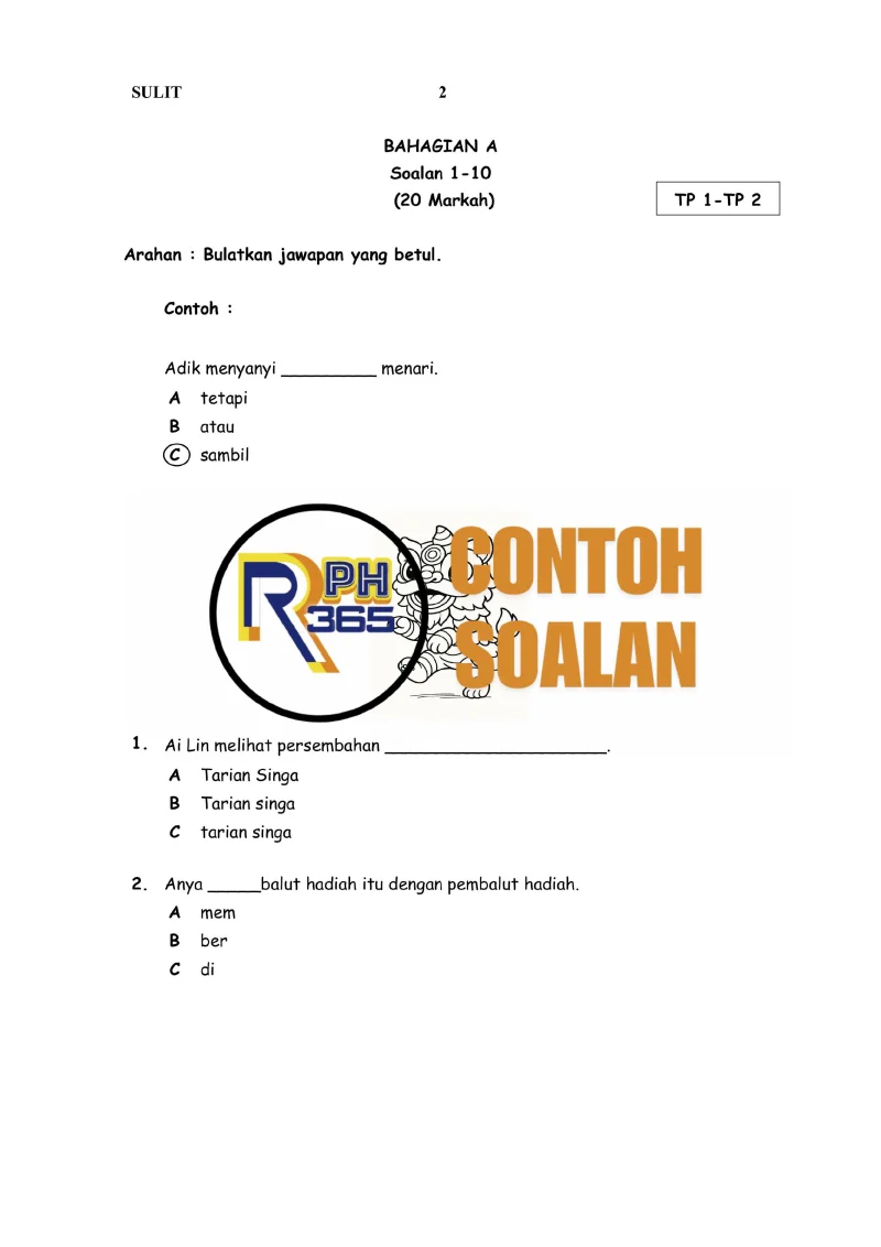 Jumlah soalan: 2 Set Edisi: Murid Tajuk terakhir: Penulis: Cikgu Mira Format fail dalam PDF.