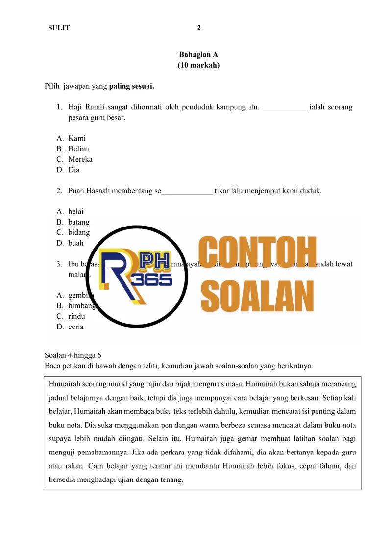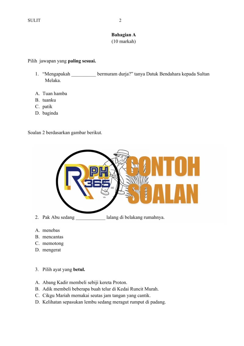 Jumlah soalan: 2 Set Edisi: Guru Tajuk terakhir: Penulis: Cikgu Bib
