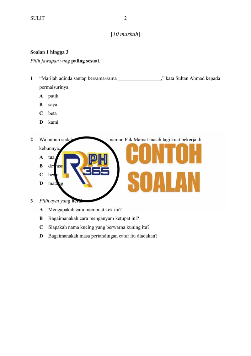 Jumlah soalan: 2 Set Edisi: Murid Tajuk terakhir: Penulis: Cikgu Ezdiani Format fail dalam PDF.