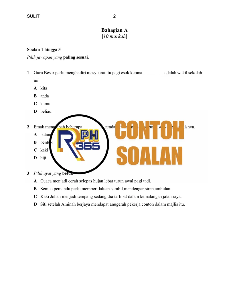 Jumlah soalan: 2 Set Edisi: Guru Tajuk terakhir: Penulis: Cikgu Lili
