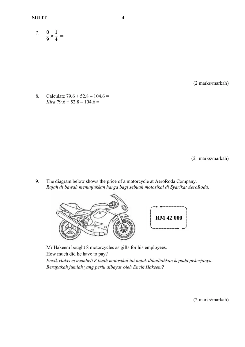 Jumlah soalan: 1 Set Edisi: Murid Tajuk terakhir: Penulis: Cikgu Fatimah Format fail dalam PDF.