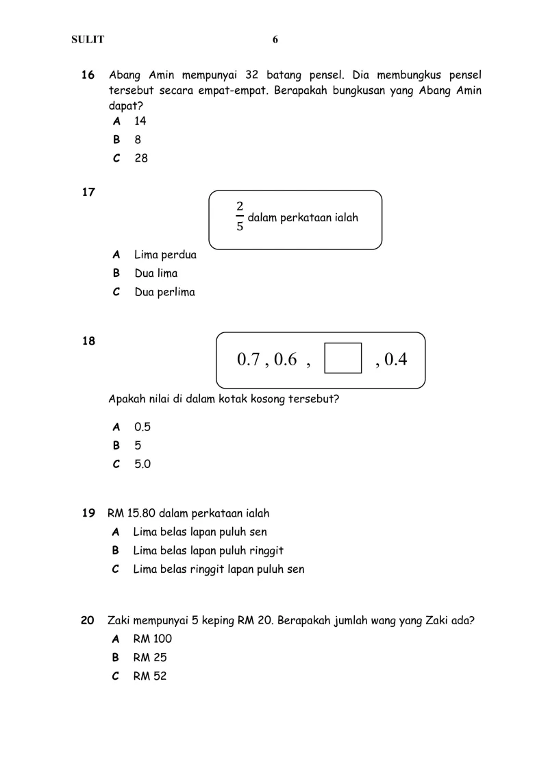 Jumlah soalan: 1 Set Edisi: Murid Tajuk terakhir: Penulis: Sir Afiq Format fail dalam PDF.