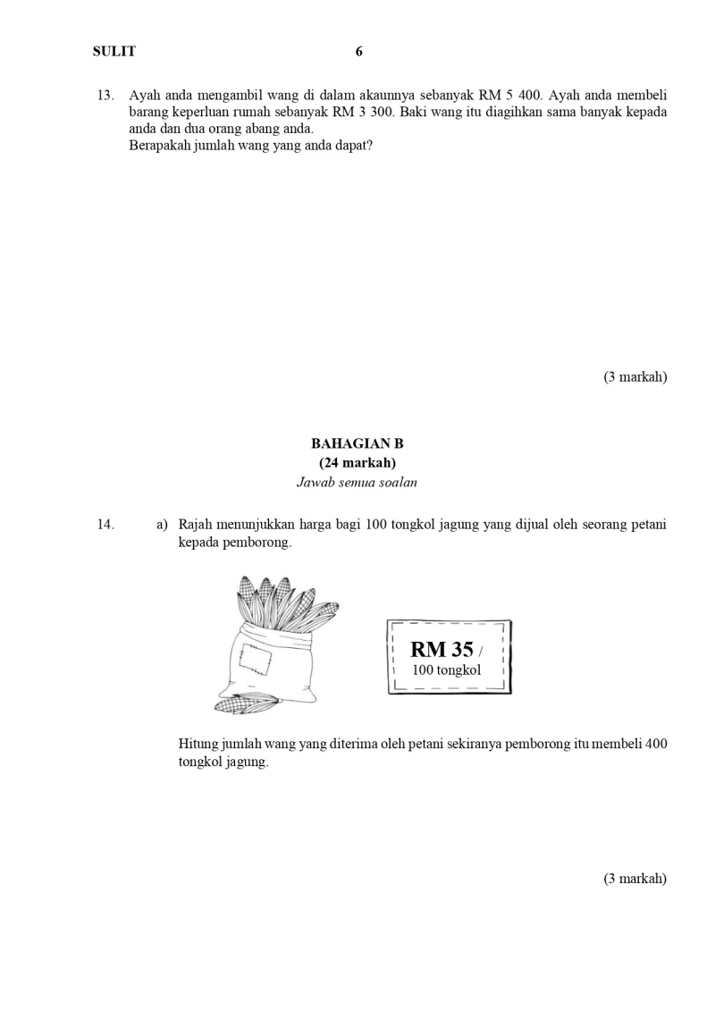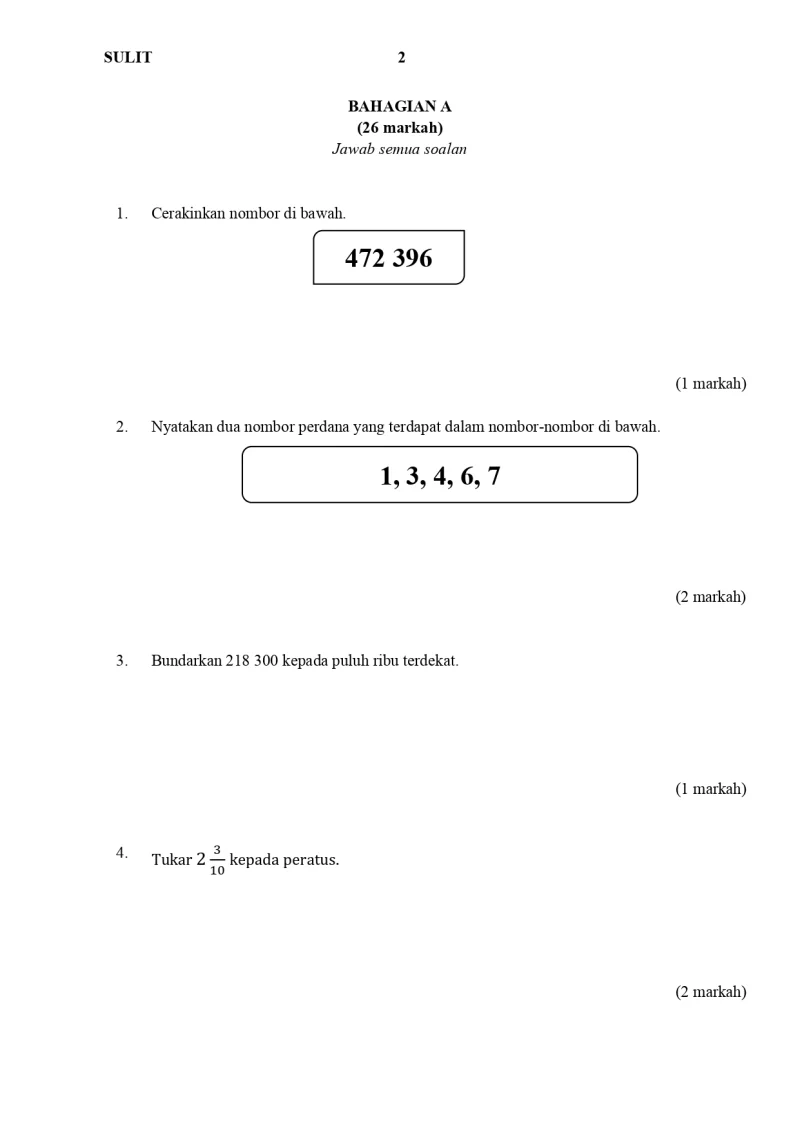 Jumlah soalan: 1 Set Edisi: Murid Tajuk terakhir: Penulis: Cikgu Fatimah Format fail dalam PDF.