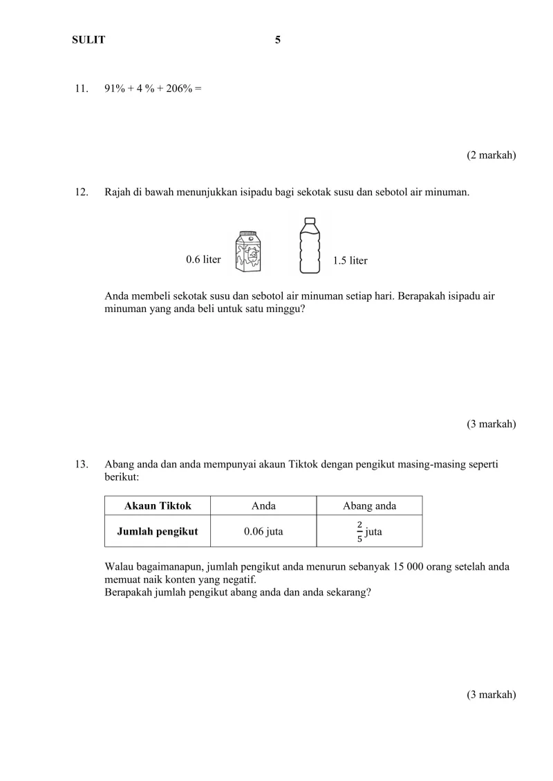 Jumlah soalan: 1 Set Edisi: Guru Tajuk terakhir: Penulis: Cikgu Fatimah Format fail dalam Word dan PDF. JSU disediakan.