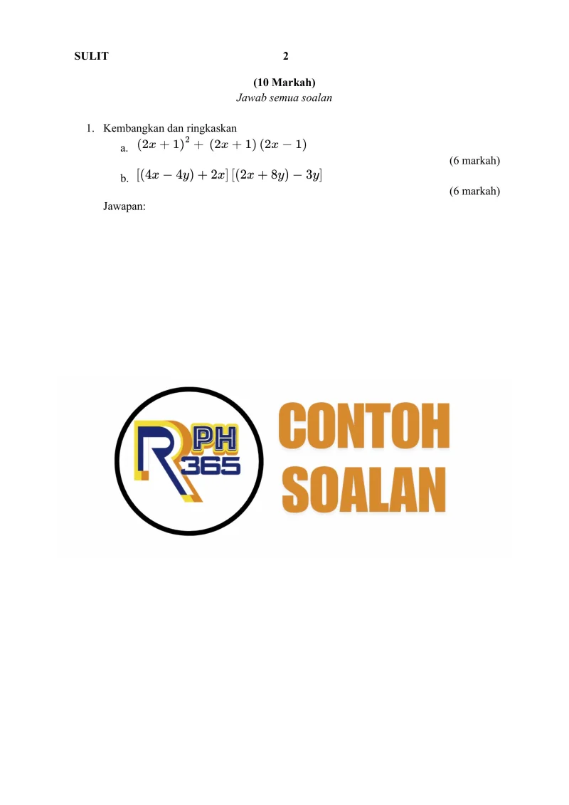 Jumlah soalan: 1 Set Edisi: Pelajar Tajuk terakhir: Penulis: Sir Afiq Format fail dalam PDF.