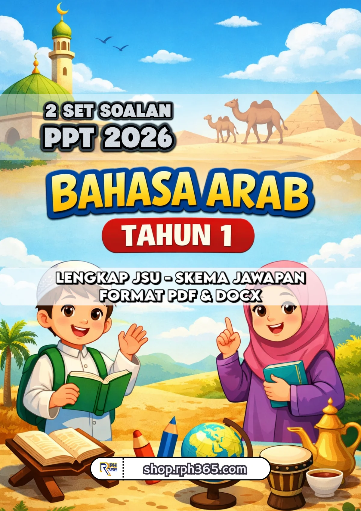 Koleksi 2 set soalan PPT Bahasa Arab Tahun 1 2026 lengkap dengan skema jawapan dan JSU. Sesuai untuk latihan dan persediaan peperiksaan. Format DOCX boleh diedit.