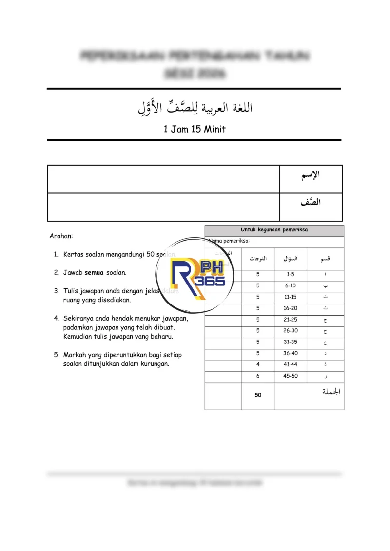 Koleksi 2 set soalan Peperiksaan Pertengahan Tahun (PPT) Bahasa Arab Tahun 1 2026 ini disediakan khusus sebagai bahan pentaksiran pertengahan tahun untuk murid sekolah rendah. Setiap set lengkap dengan kertas soalan, skema jawapan, dan JSU dalam format DOCX yang boleh diedit. Soalan disusun mengikut aras kesukaran bagi membantu guru menilai pencapaian murid secara menyeluruh.