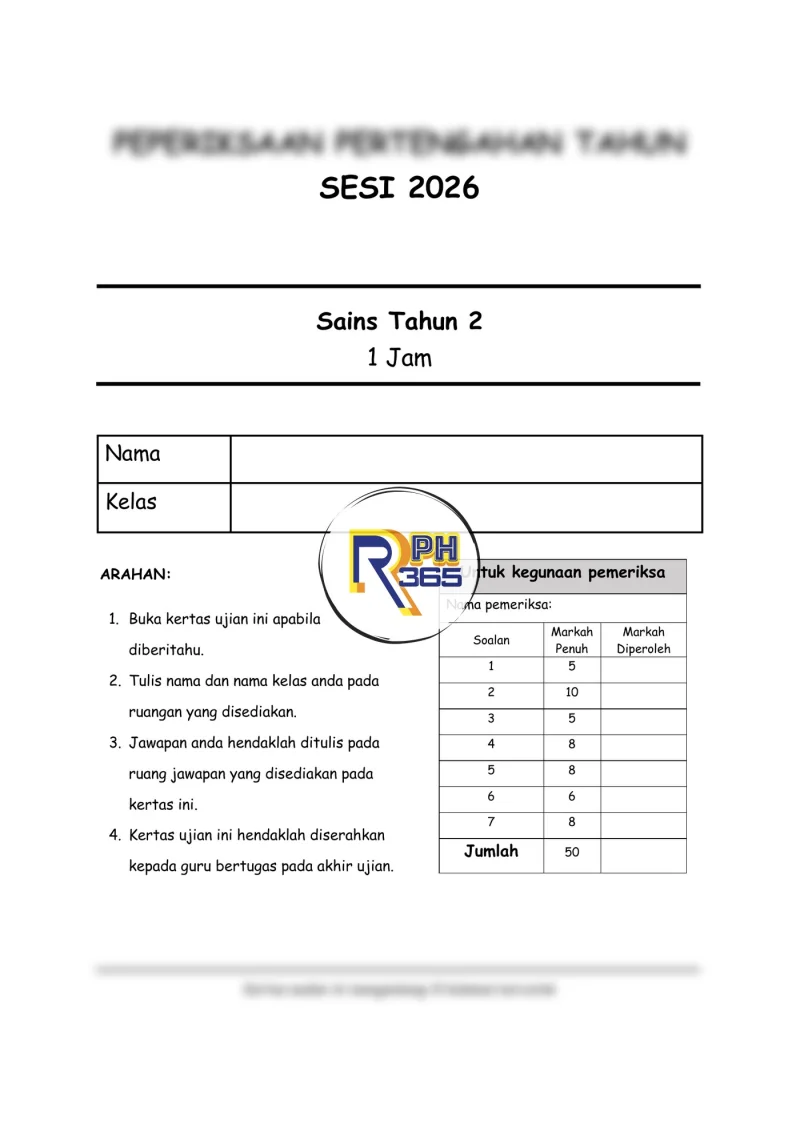 Koleksi 2 set soalan Peperiksaan Pertengahan Tahun (PPT) Sains Tahun 2 2026 ini disediakan khusus sebagai bahan pentaksiran pertengahan tahun untuk murid sekolah rendah. Setiap set lengkap dengan kertas soalan, skema jawapan, dan JSU dalam format DOCX yang boleh diedit mengikut keperluan guru.