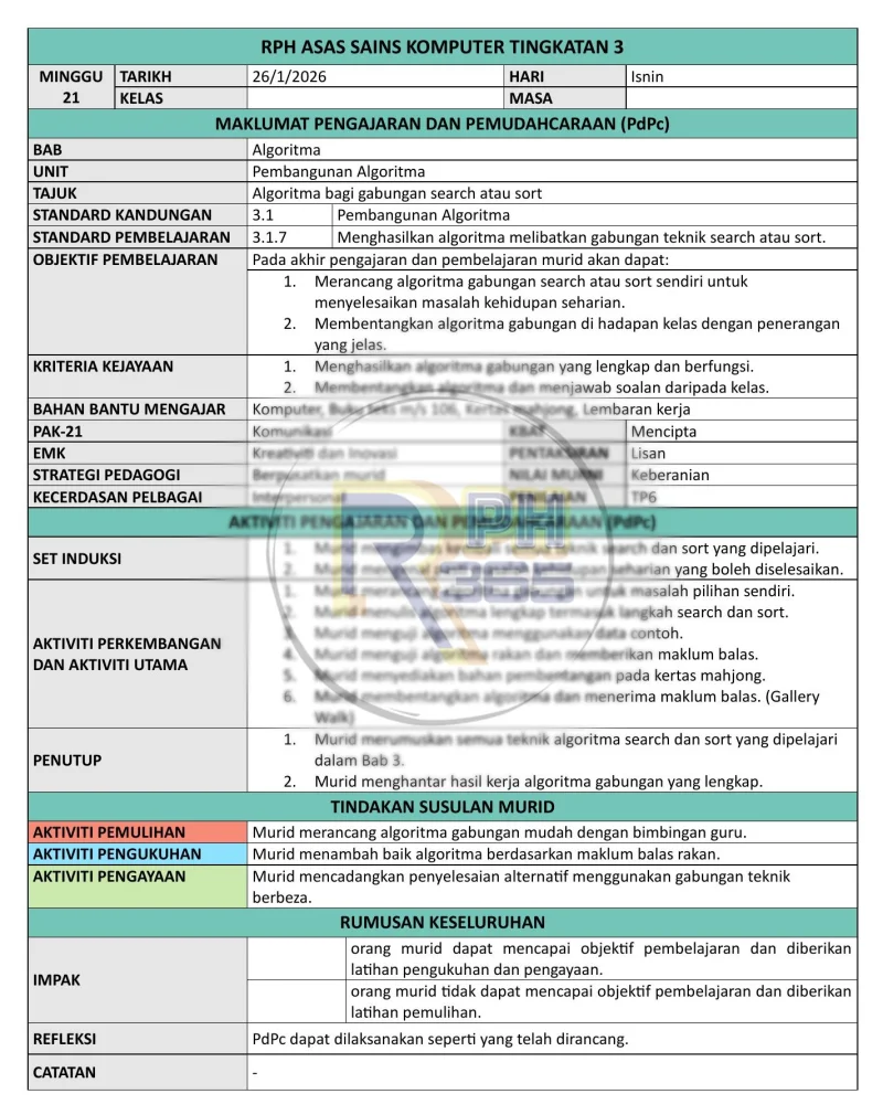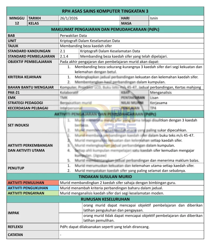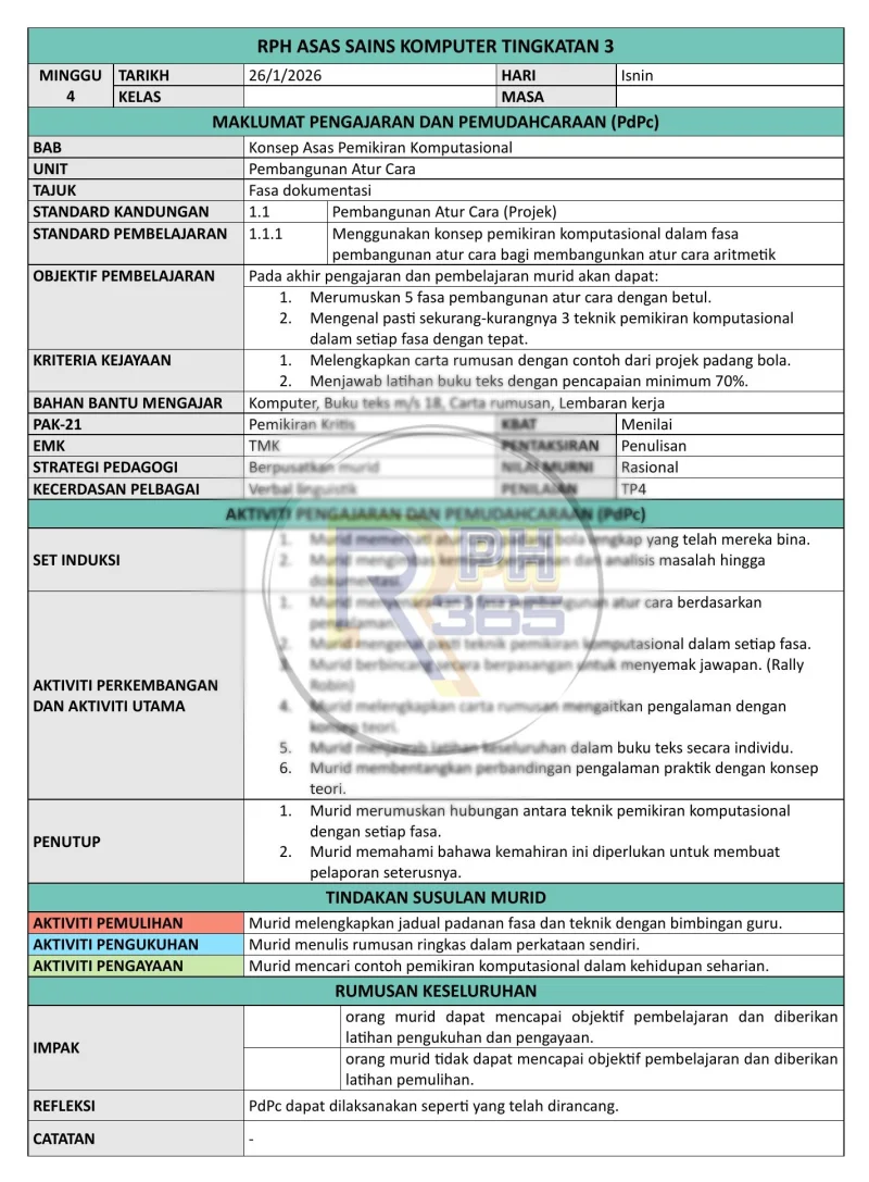 RPH & RPT 2026 Asas Sains Komputer Tingkatan 3 by RPH365