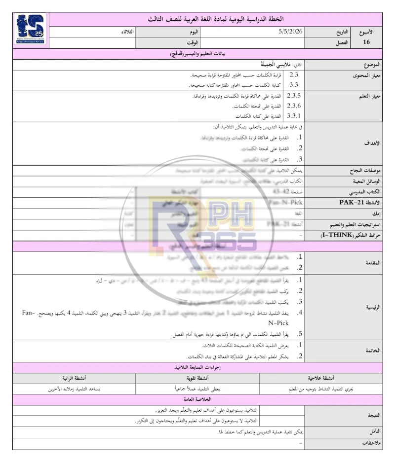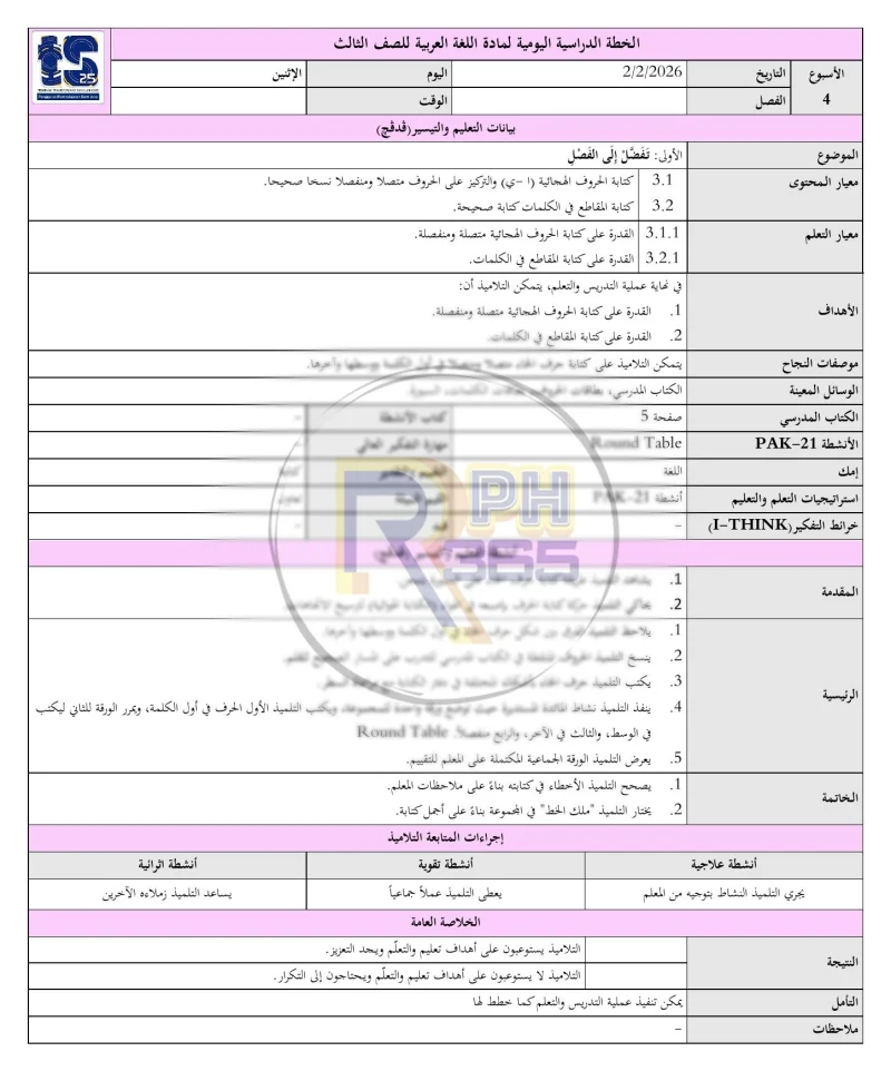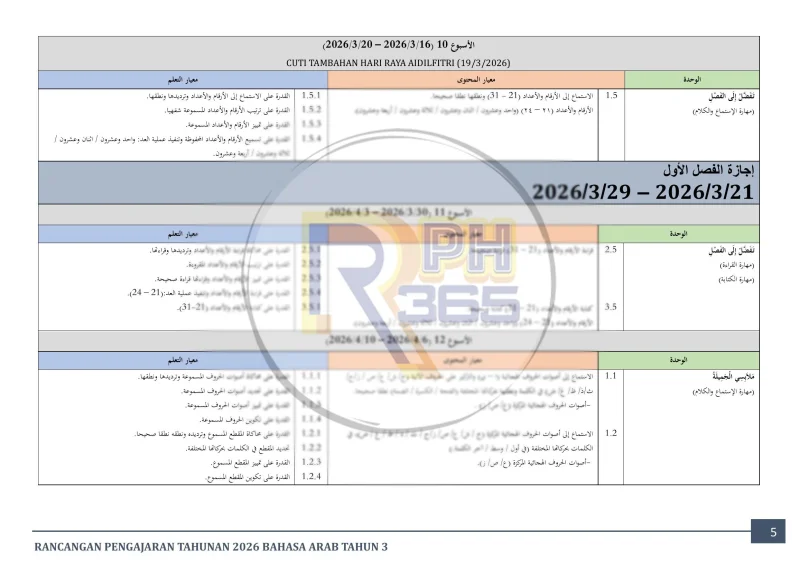 RPH & RPT 2026 Bahasa Arab Tahun 3 SK adalah set lengkap dokumen perancangan pengajaran yang disediakan khas untuk guru Bahasa Arab di sekolah rendah. Ditulis oleh guru subjek berpengalaman dan mengikuti Takwim Persekolahan 2026 selama 43 minggu.