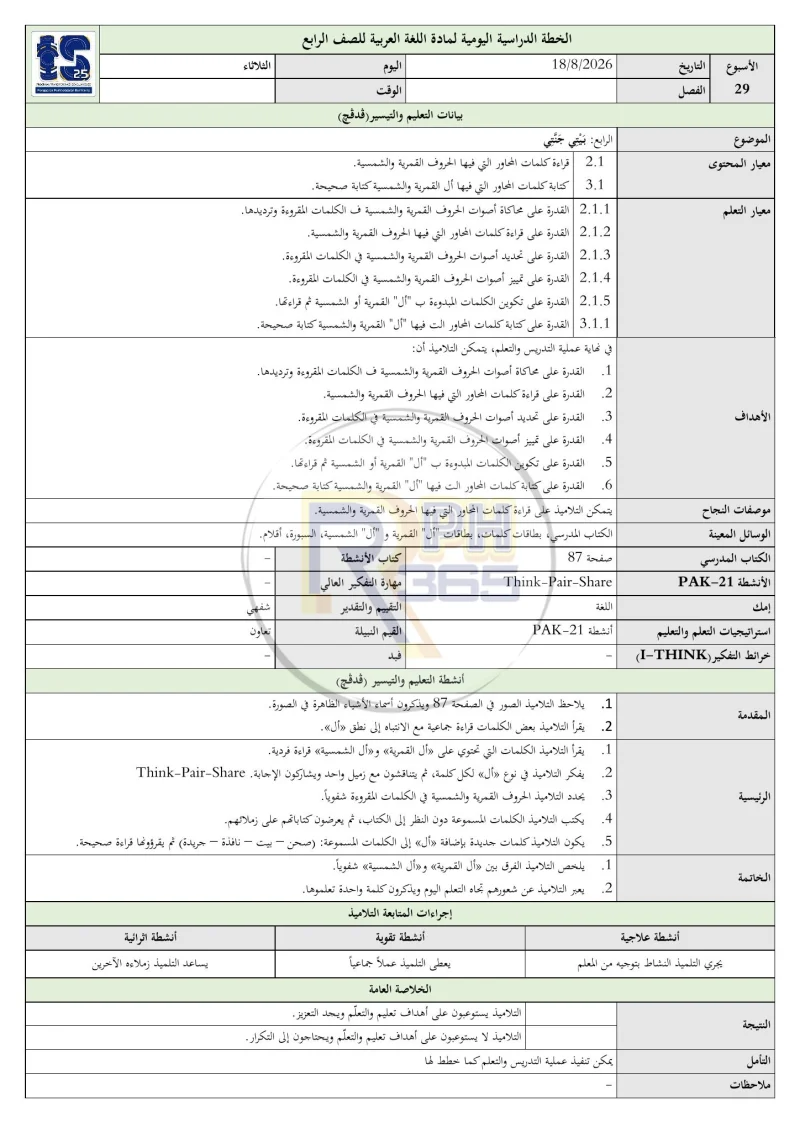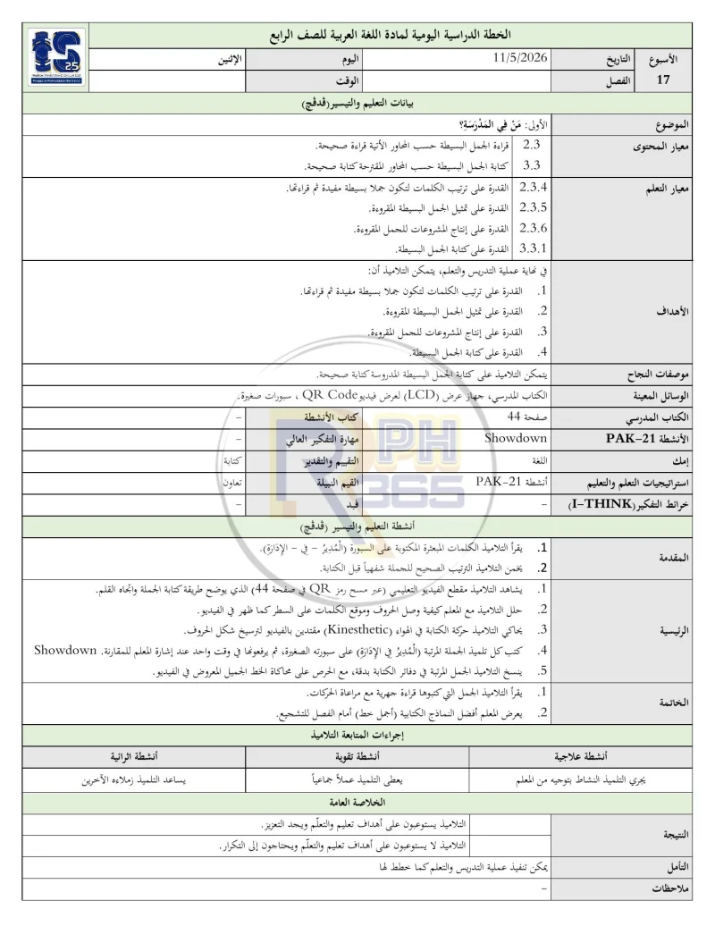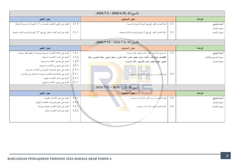 RPH & RPT 2026 Bahasa Arab Tahun 4 SK direka khas untuk guru yang mengajar subjek Bahasa Arab di sekolah kebangsaan. Pakej lengkap ini mengandungi Rancangan Pengajaran Tahunan (RPT) dan Rancangan Pengajaran Harian (RPH) berpandukan DSKP KSSR Semakan 2017.