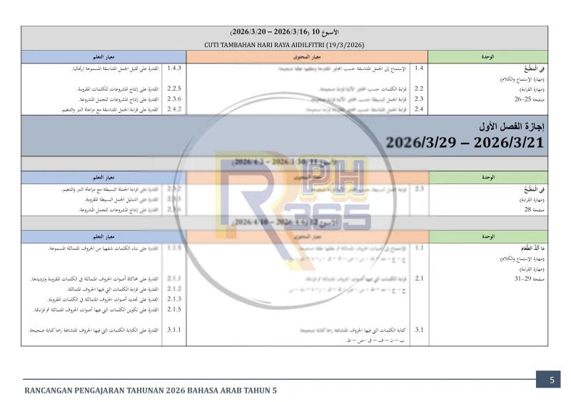 RPH & RPT 2026 Bahasa Arab Tahun 5 SK by RPH365