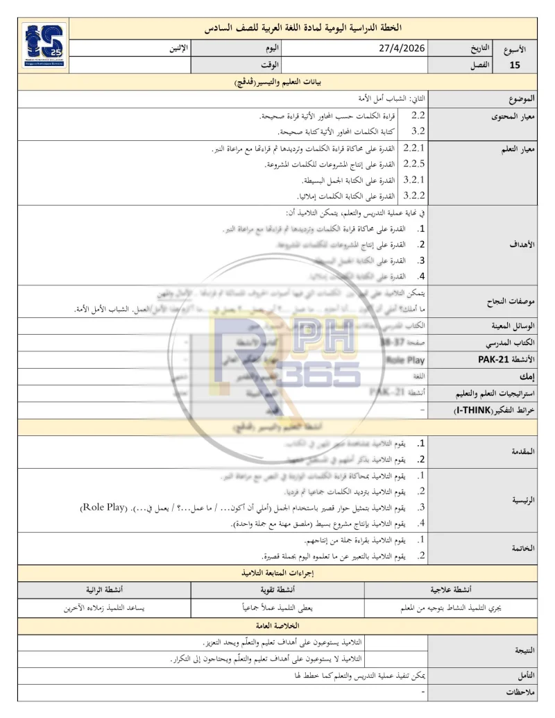 RPH & RPT 2026 Bahasa Arab Tahun 6 SK yang lengkap dengan 46 fail termasuk RPH dan RPT untuk Kumpulan A & B. Disusun mengikut Takwim Persekolahan 2026 (43 minggu) oleh guru subjek berpengalaman.
