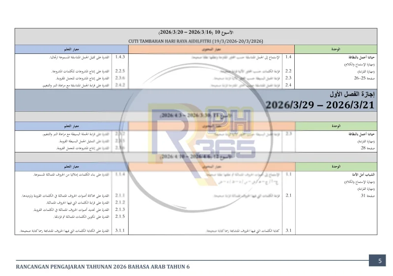 RPH & RPT 2026 Bahasa Arab Tahun 6 SK by RPH365