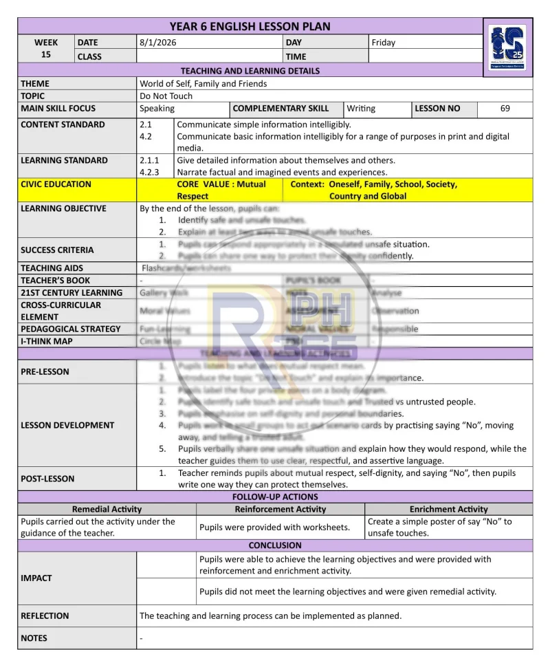 "Penyediaan RPH sangat terperinci dan lengkap dengan aktiviti pdpc yang menarik. Tahniah, Team RPH365 Shop"