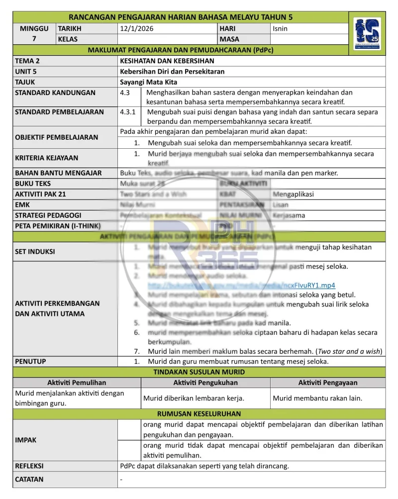 Sesuai untuk guru Bahasa Melayu Tahun 5 yang mahukan RPH tersusun rapi dan mudah disesuaikan mengikut keperluan sekolah. Format DOCX membolehkan penyuntingan penuh untuk disesuaikan dengan gaya pengajaran masing-masing.