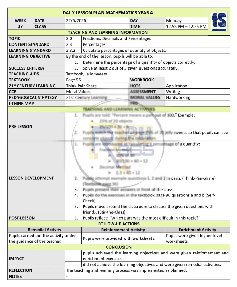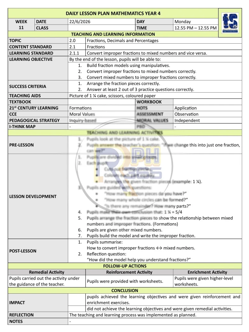 Jimatkan masa persediaan anda dan fokus pada kualiti pengajaran di dalam kelas. Dapatkan RPH & RPT 2026 Matematik DLP Tahun 4 sekarang dan mulakan sesi persekolahan 2026 dengan lebih terancang dan yakin.