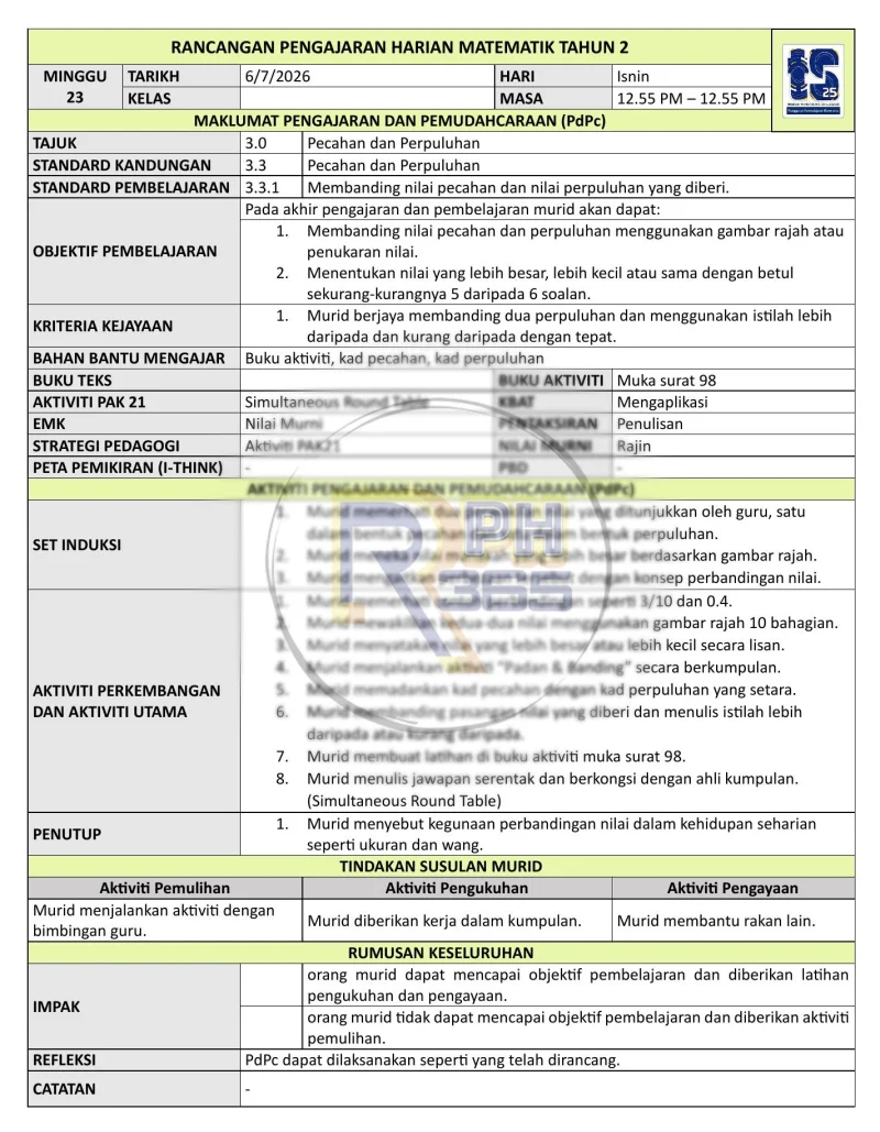 RPH & RPT 2026 Matematik SK Tahun 2 by RPH365