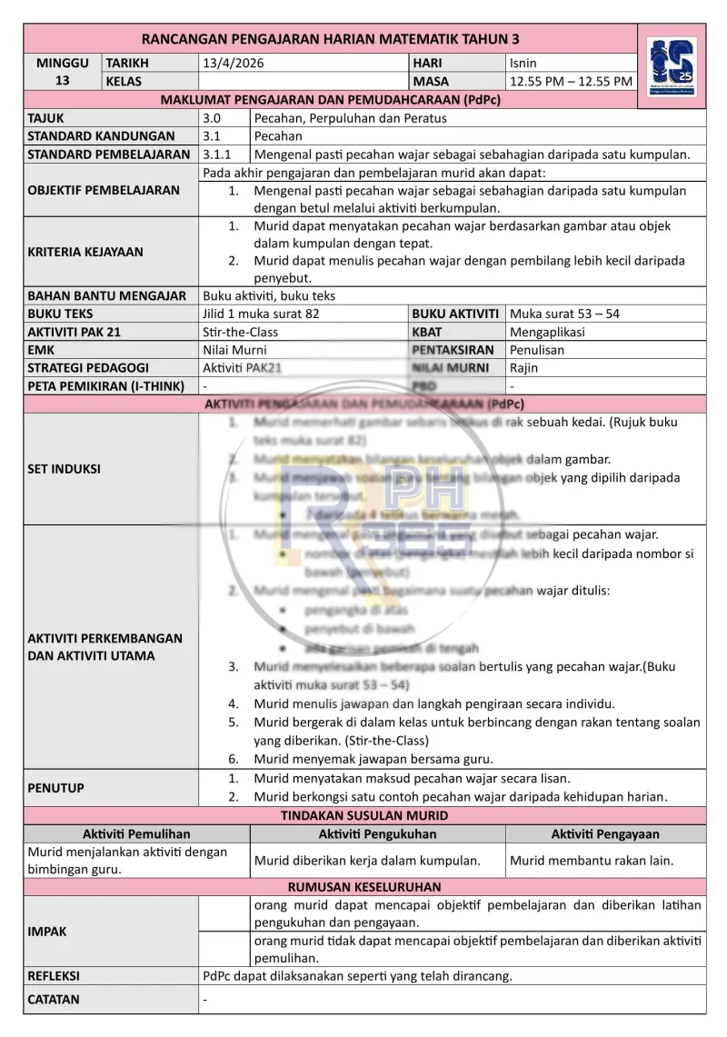 Sesuai untuk guru Matematik Tahun 3 Sekolah Rendah yang ingin merancang pengajaran berkesan sepanjang tahun 2026. Kandungan tersusun rapi dengan rujukan DSKP yang tepat untuk memastikan objektif pembelajaran tercapai.