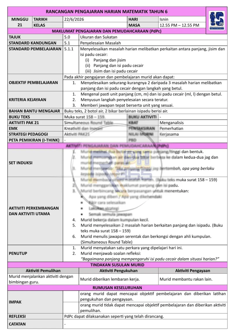 "Susunan RPH kemas dan mudah dibaca. RPH berpandukan buku teks dan DSKP."